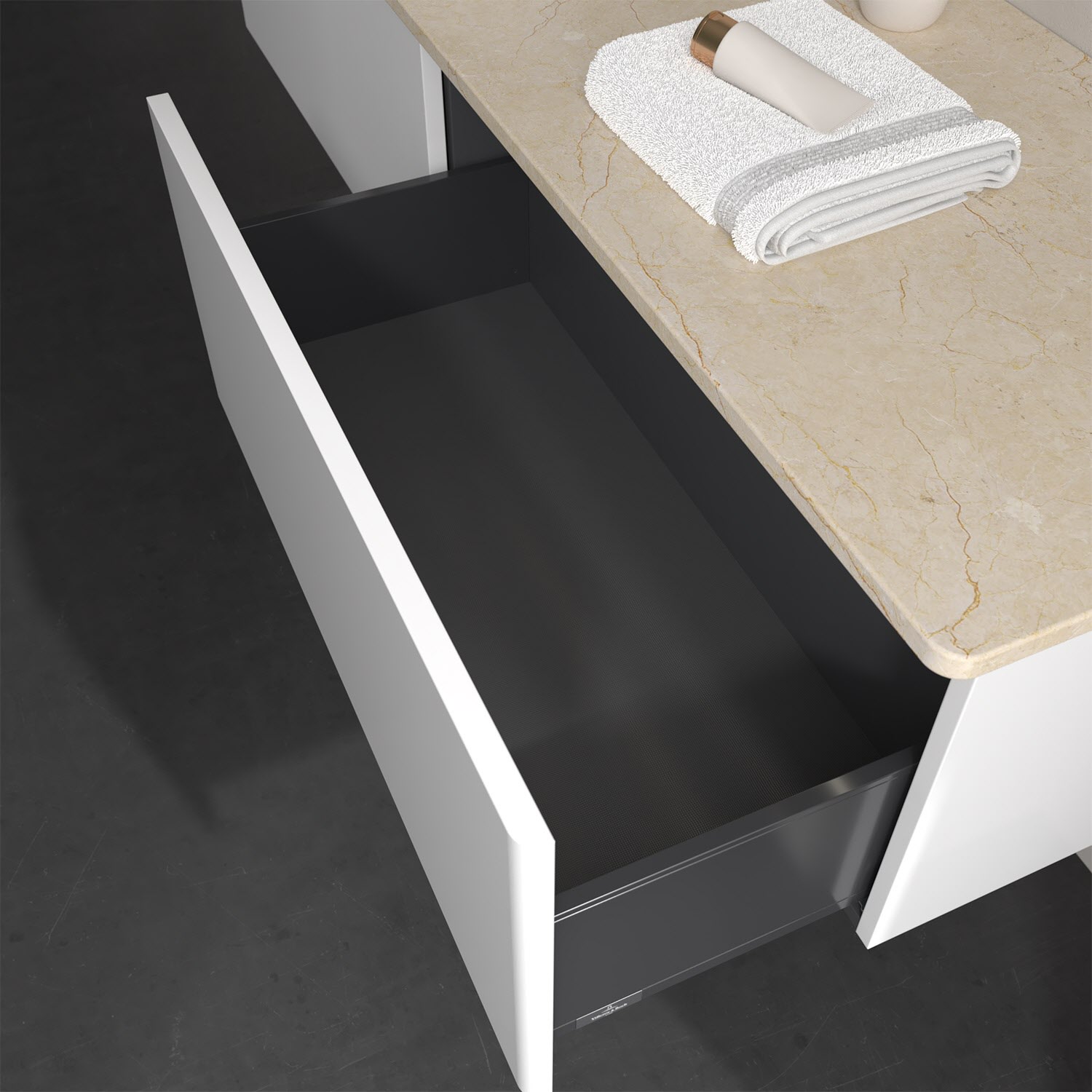 Villeroy & Boch Antao Waschbeckenunterschrank, 160 x 36 cm, 2 Auszüge mit LED-Licht, Front ohne Struktur, ohne Hahnloch, für Waschtisch links