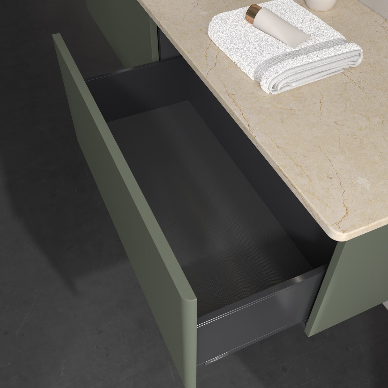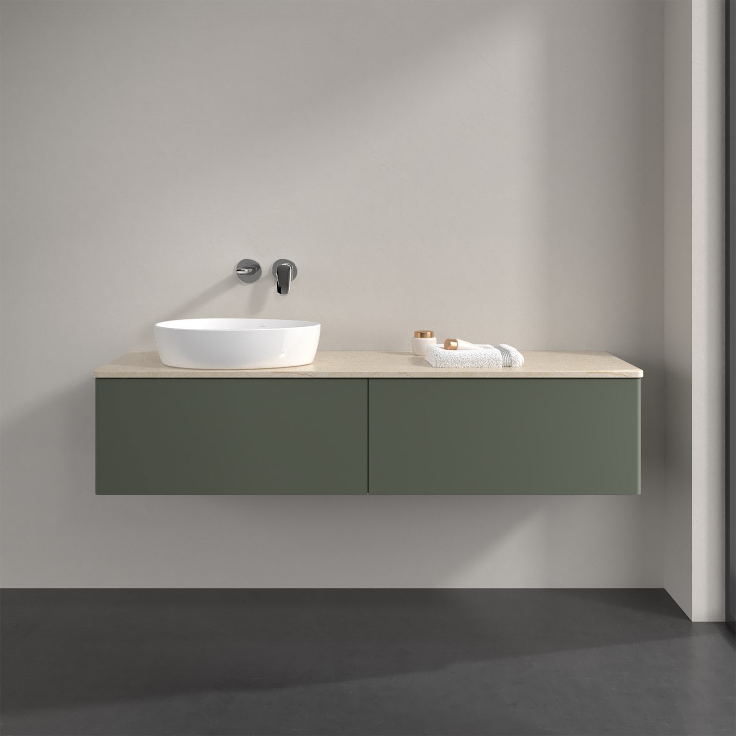 Villeroy & Boch Antao Waschbeckenunterschrank, 160 x 36 cm, 2 Auszüge mit LED-Licht, Front ohne Struktur, ohne Hahnloch, für Waschtisch links