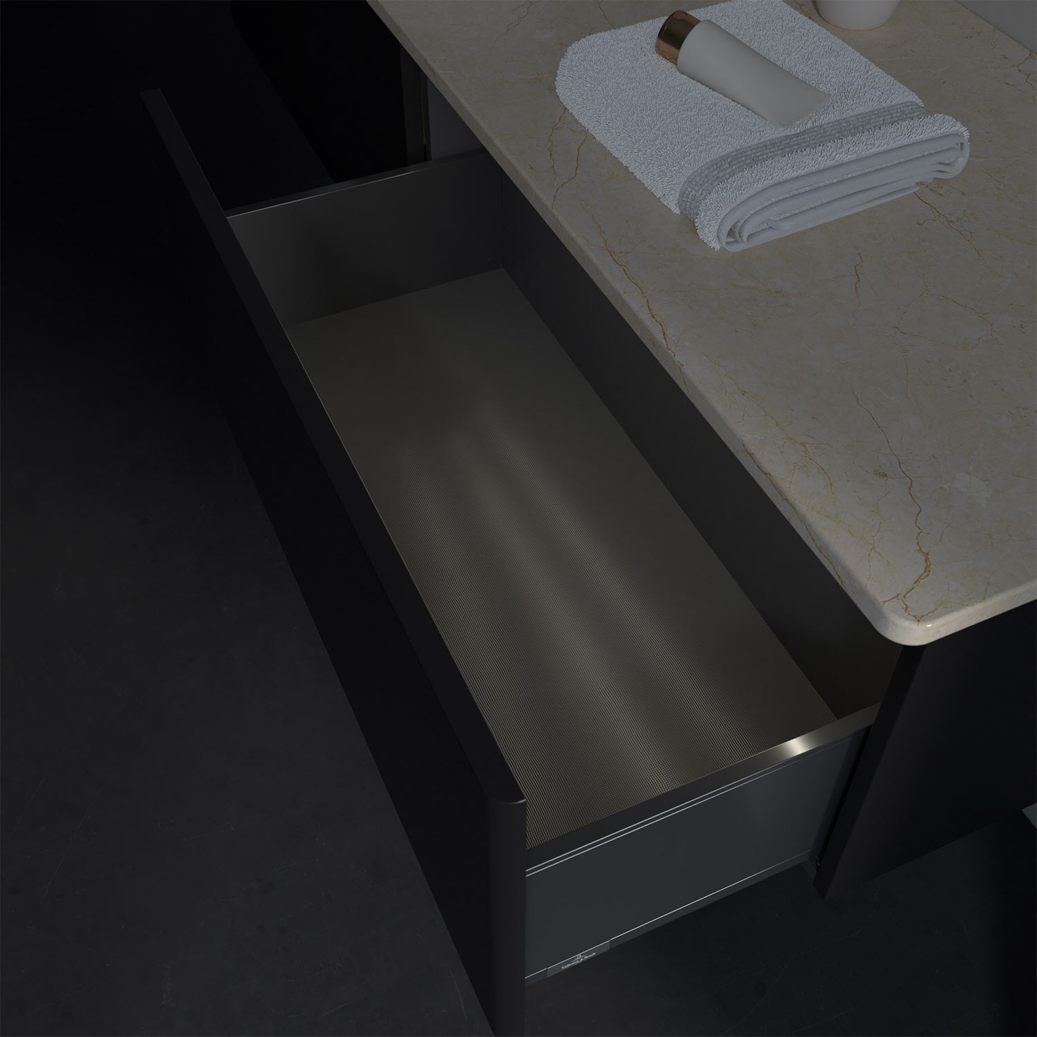 - kein Umfallen oder Verrutschen von Pflegeprodukten in den Schubladen dank rutschhemmendem Boden