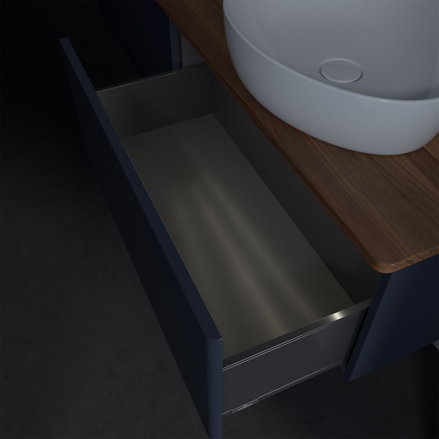 Villeroy & Boch Antao Waschbeckenunterschrank, 160 x 36 cm, 2 Auszüge mit LED-Licht, Front ohne Struktur, ohne Hahnloch, für Waschtisch rechts
