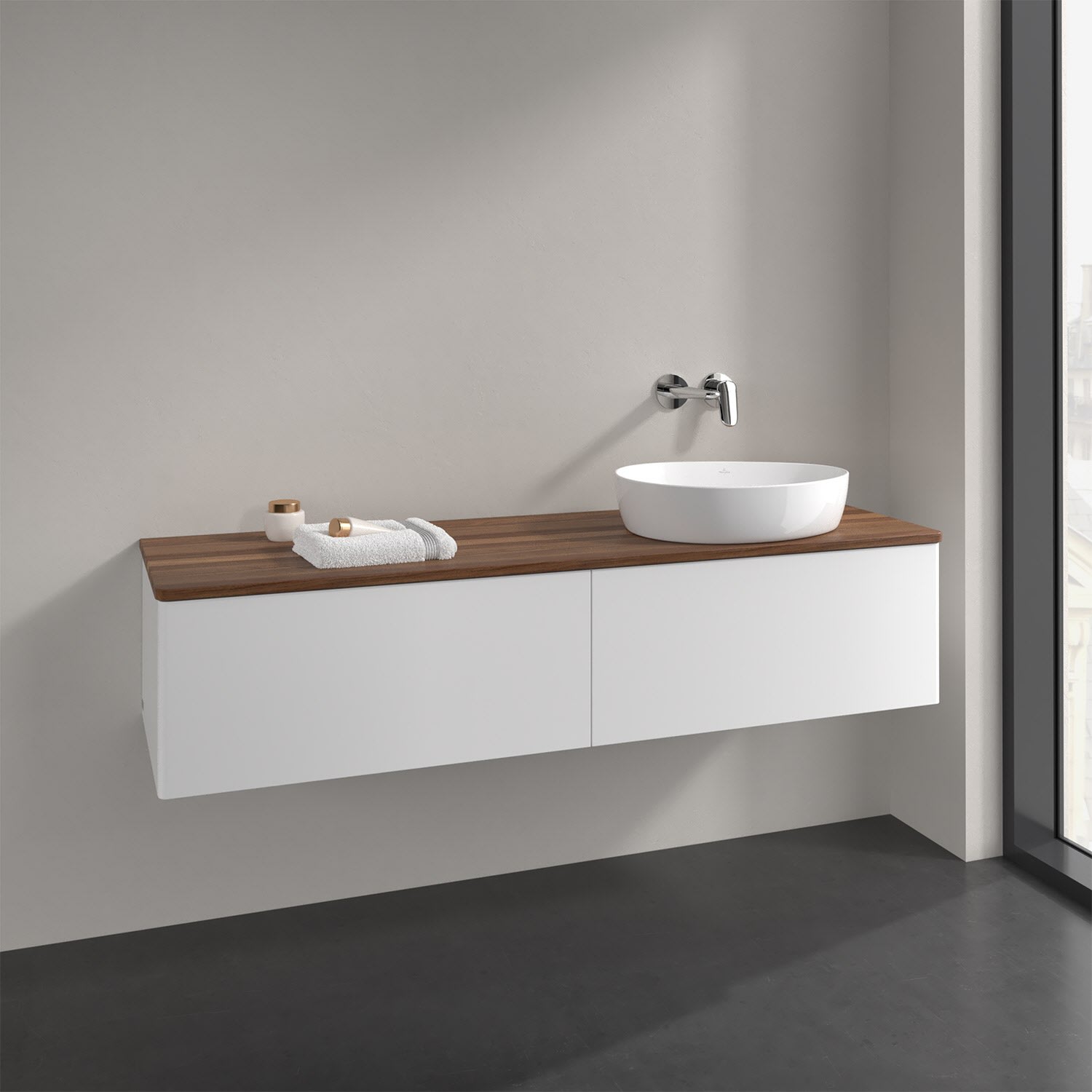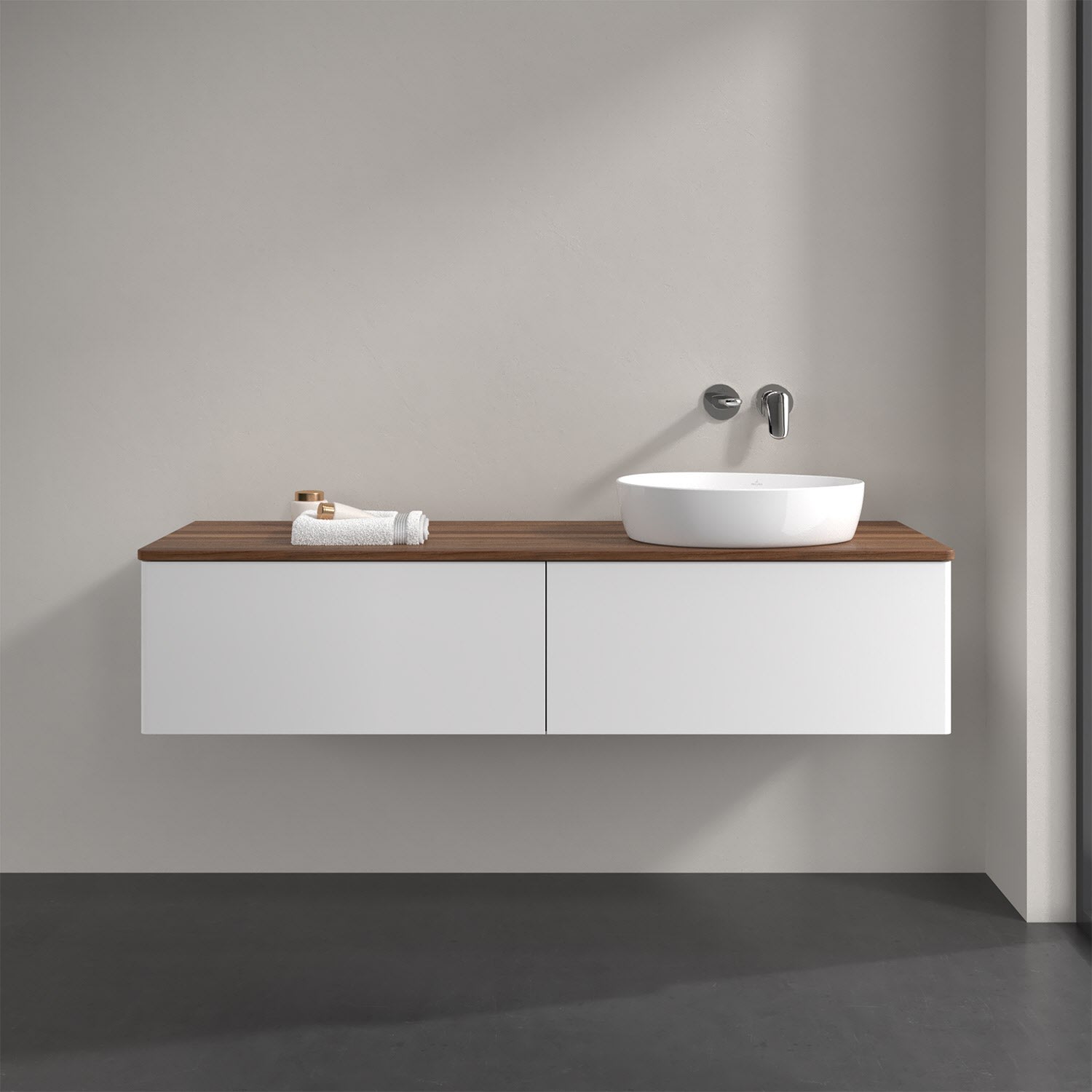 Villeroy & Boch Antao Waschbeckenunterschrank, 160 x 36 cm, 2 Auszüge mit LED-Licht, Front ohne Struktur, ohne Hahnloch, für Waschtisch rechts