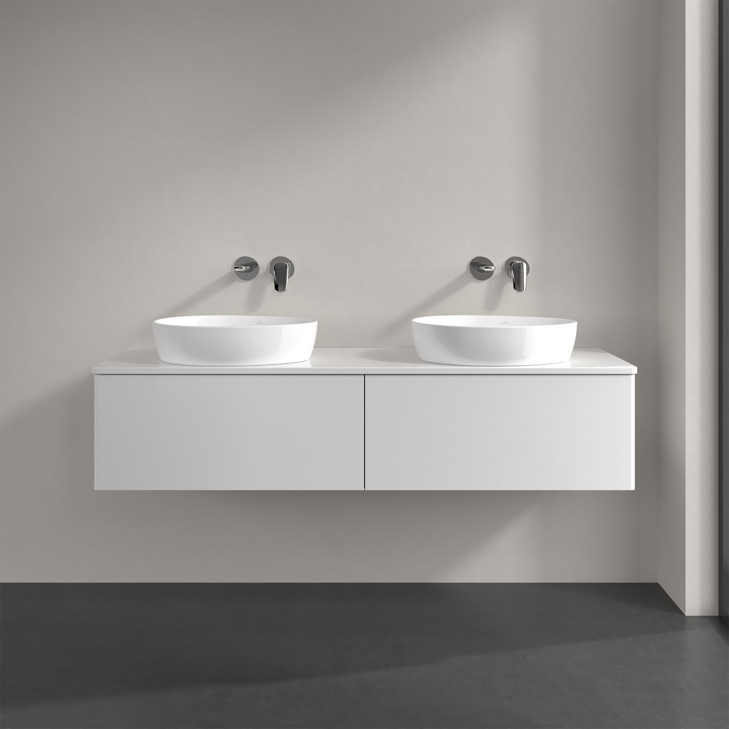 Villeroy & Boch Antao Waschbeckenunterschrank, 160 x 36 cm, 2 Auszüge mit LED-Licht, Front ohne Struktur, ohne Hahnloch, für Waschtisch links und rech