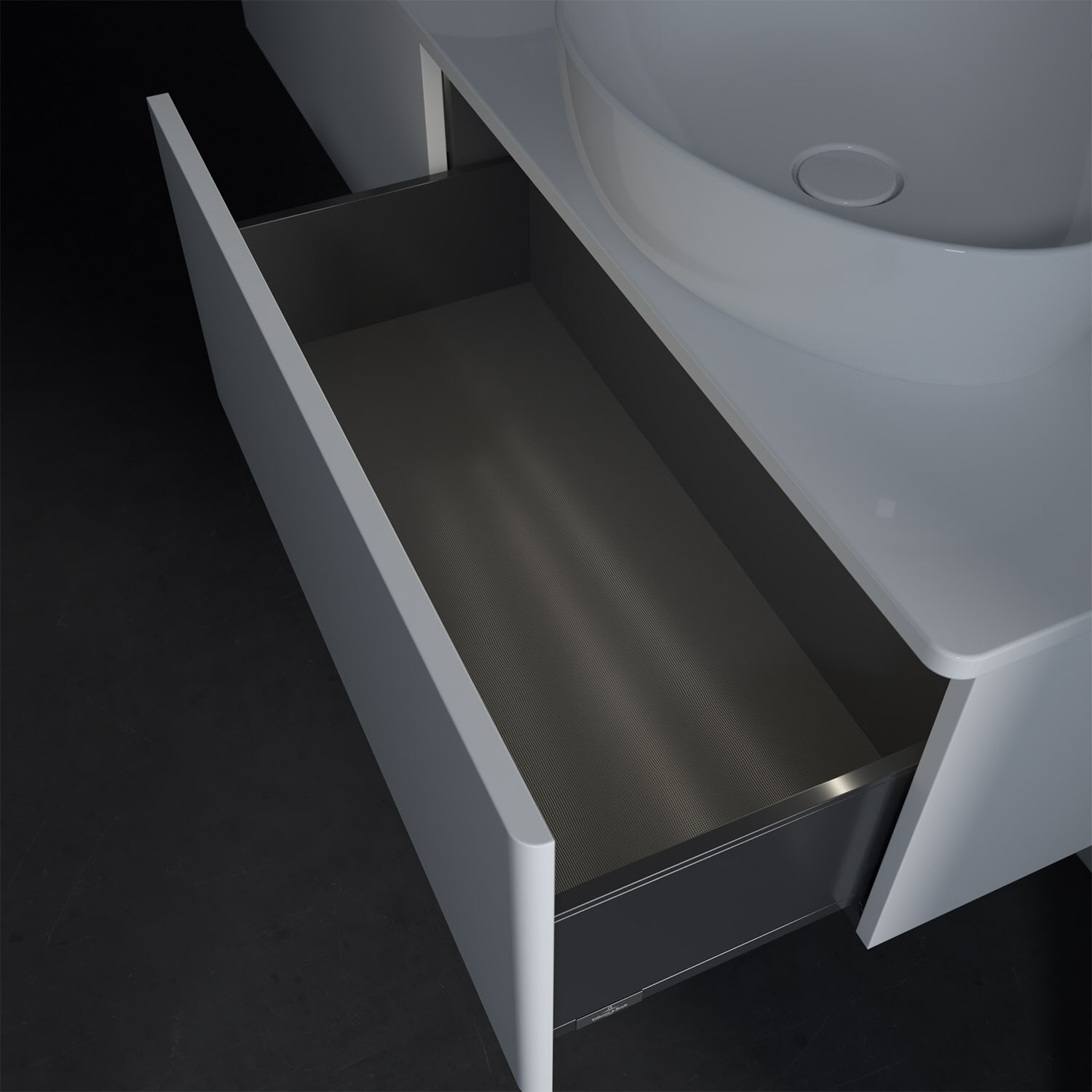 - kein Umfallen oder Verrutschen von Pflegeprodukten in den Schubladen dank rutschhemmendem Boden