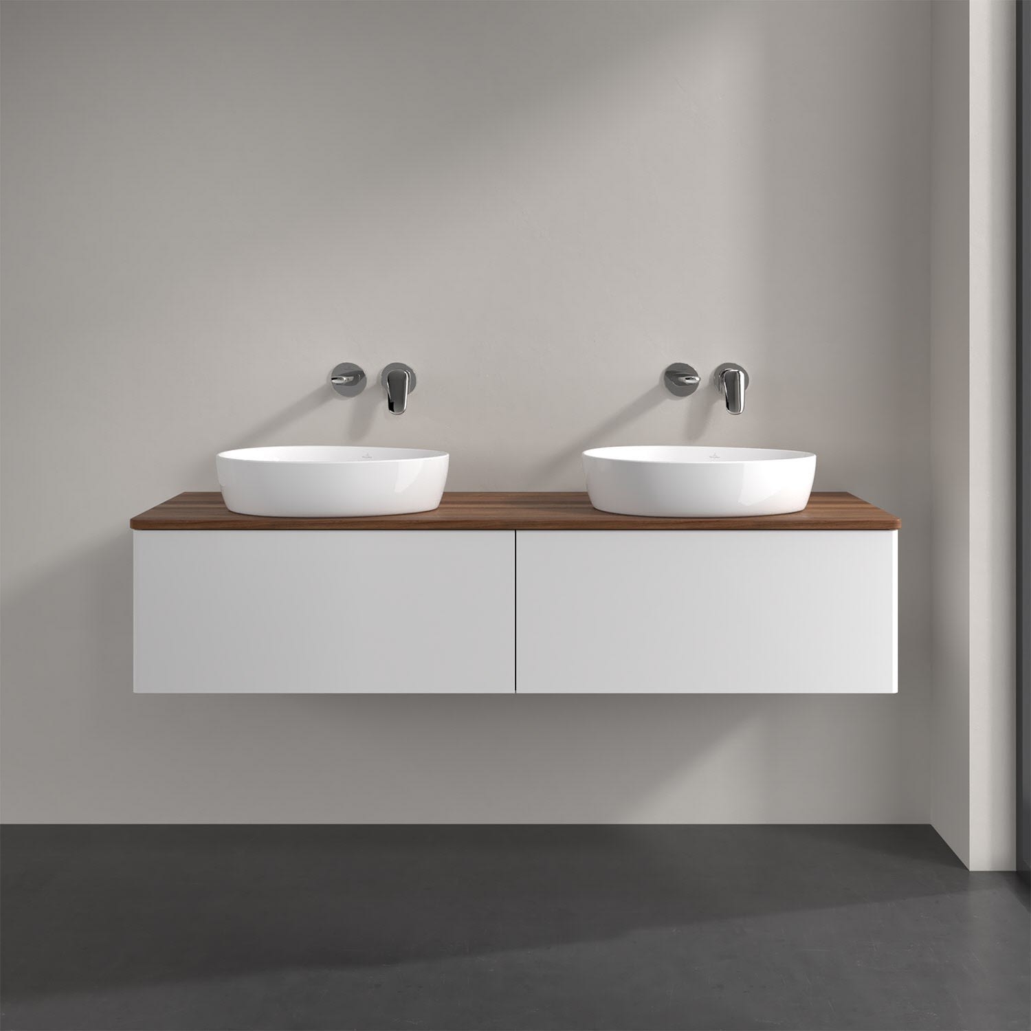 Villeroy & Boch Antao Waschbeckenunterschrank, 160 x 36 cm, 2 Auszüge mit LED-Licht, Front ohne Struktur, ohne Hahnloch, für Waschtisch links und rech