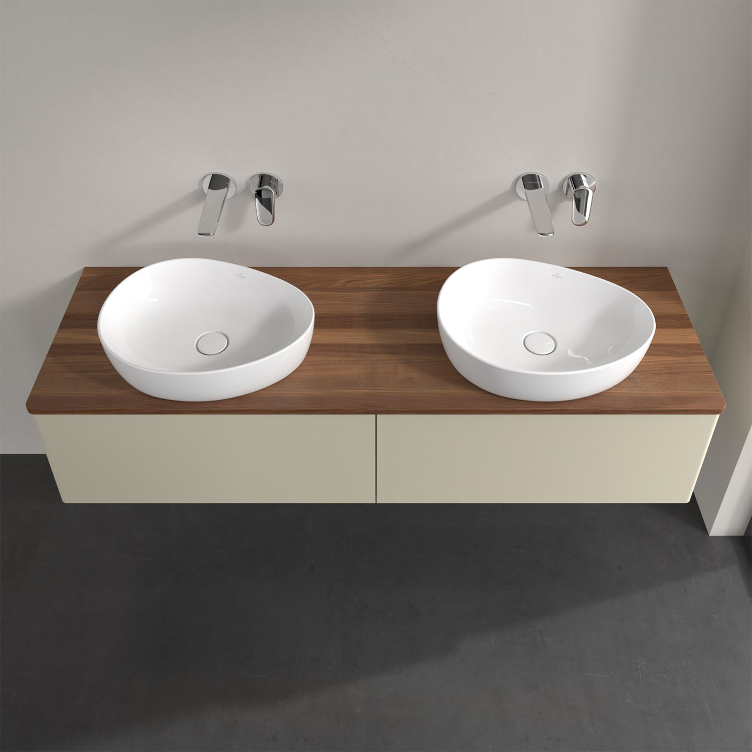 Für diesen Waschbeckenunterschrank stehen Ihnen Aufsatzwaschtische aus verschiedenen Serien zur Verfügung (siehe "Passliste" unter Downloads). Ein ausgewähltes Beispiel finden Sie im Zubehör. Den Waschtisch bitte separat mitbestellen.