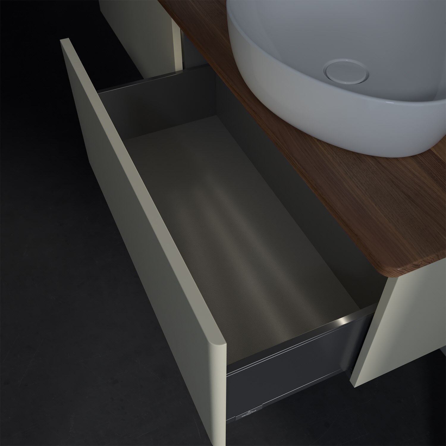 - kein Umfallen oder Verrutschen von Pflegeprodukten in den Schubladen dank rutschhemmendem Boden
