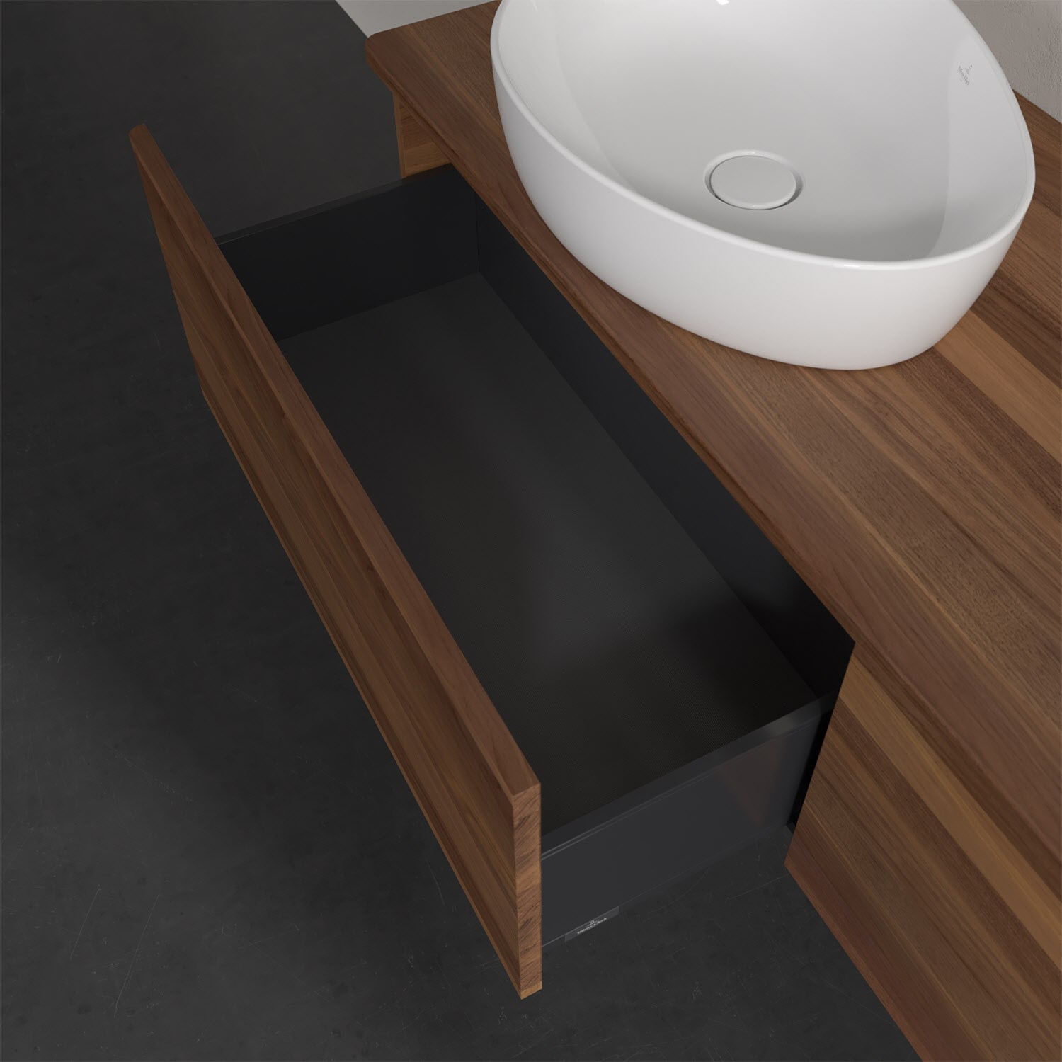 Für diesen Waschbeckenunterschrank stehen Ihnen Aufsatzwaschtische aus verschiedenen Serien zur Verfügung (siehe "Passliste" unter Downloads). Ein ausgewähltes Beispiel finden Sie im Zubehör. Den Waschtisch bitte separat mitbestellen.