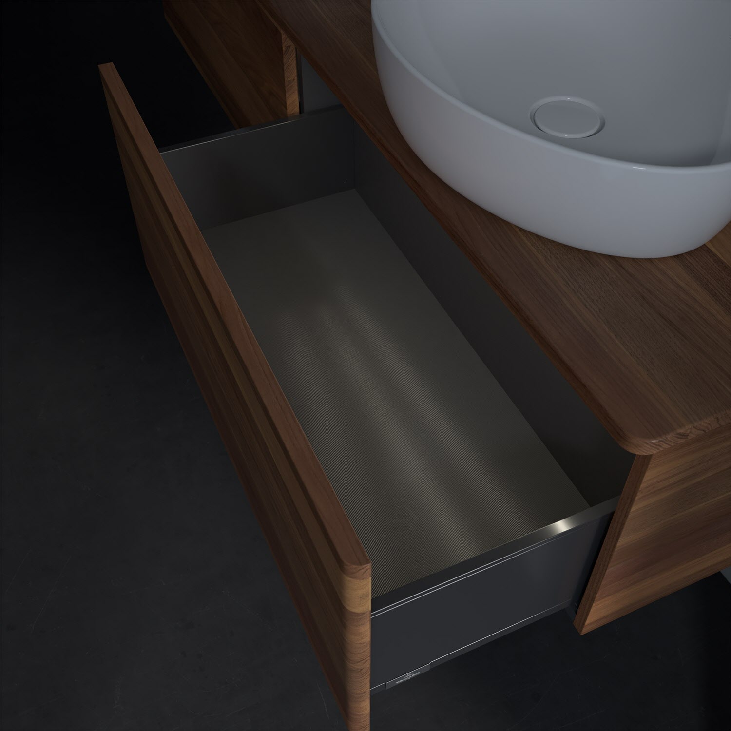 - kein Umfallen oder Verrutschen von Pflegeprodukten in den Schubladen dank rutschhemmendem Boden