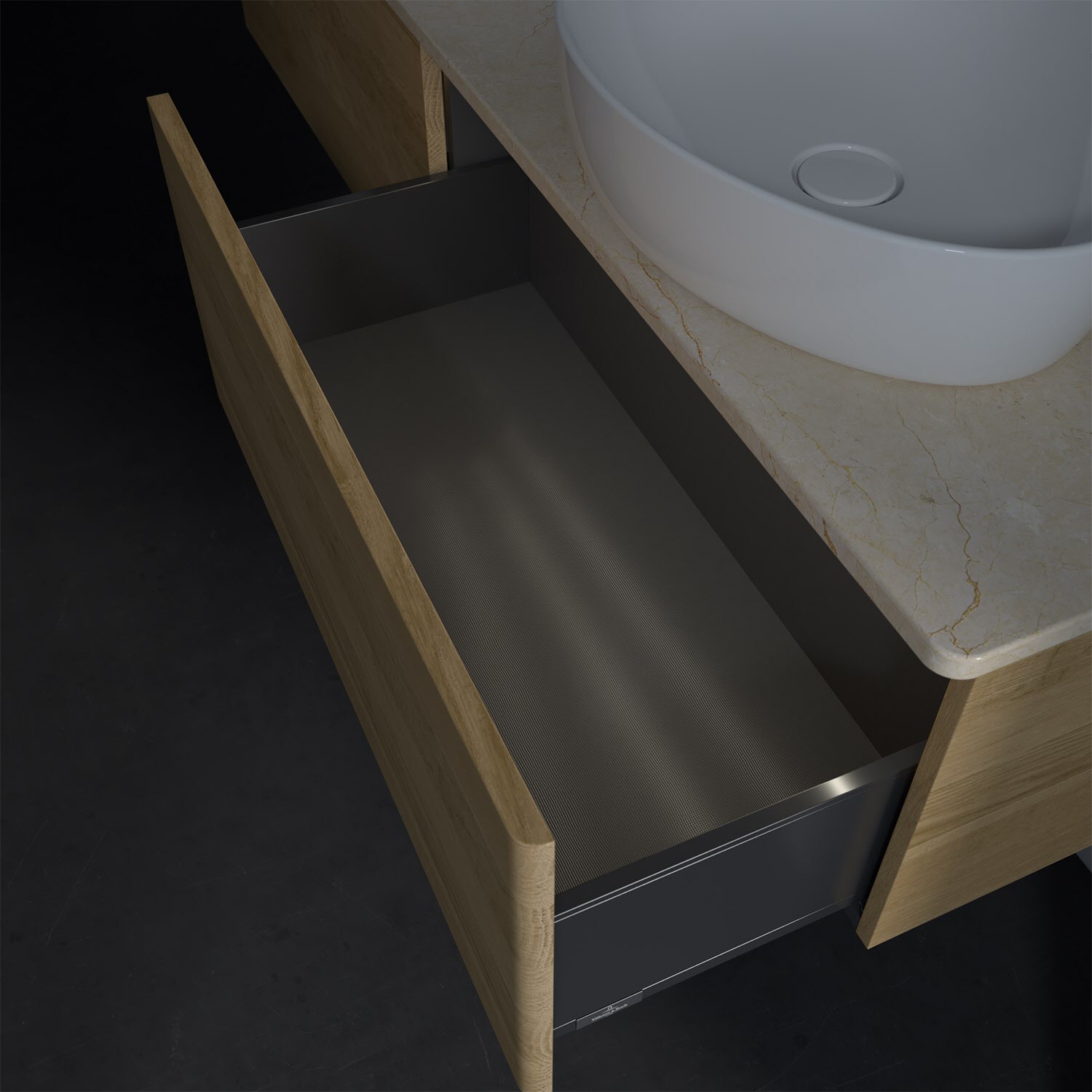 - kein Umfallen oder Verrutschen von Pflegeprodukten in den Schubladen dank rutschhemmendem Boden