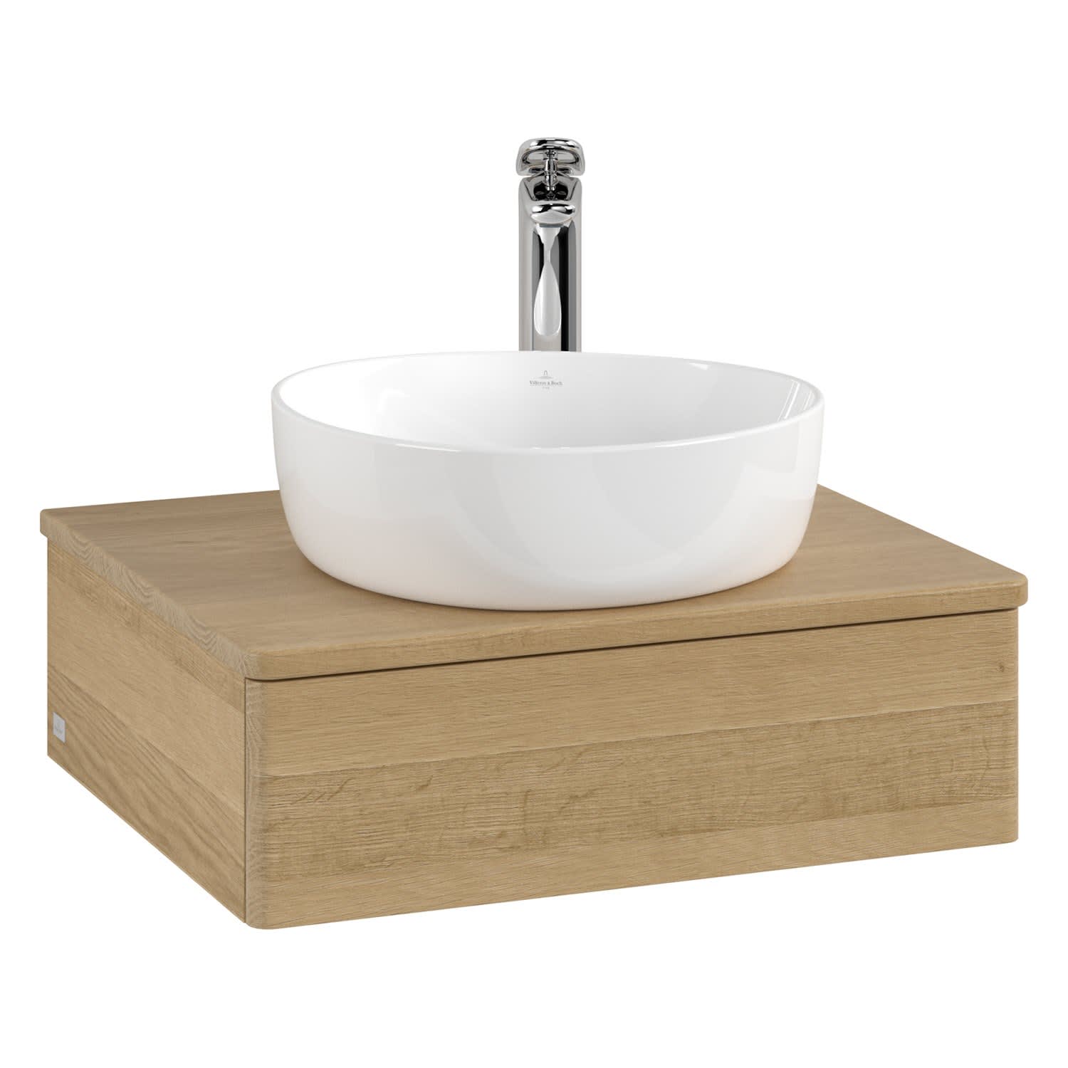 Villeroy & Boch Antao Waschbeckenunterschrank, 60 x 19 cm, 1 Auszug mit LED-Licht, Front ohne Struktur, mit Hahnloch
