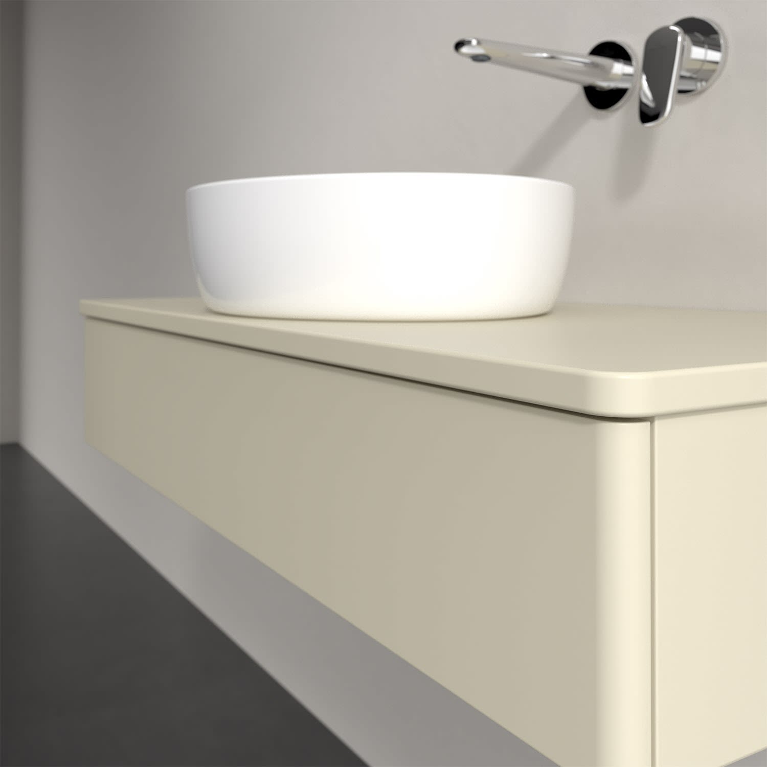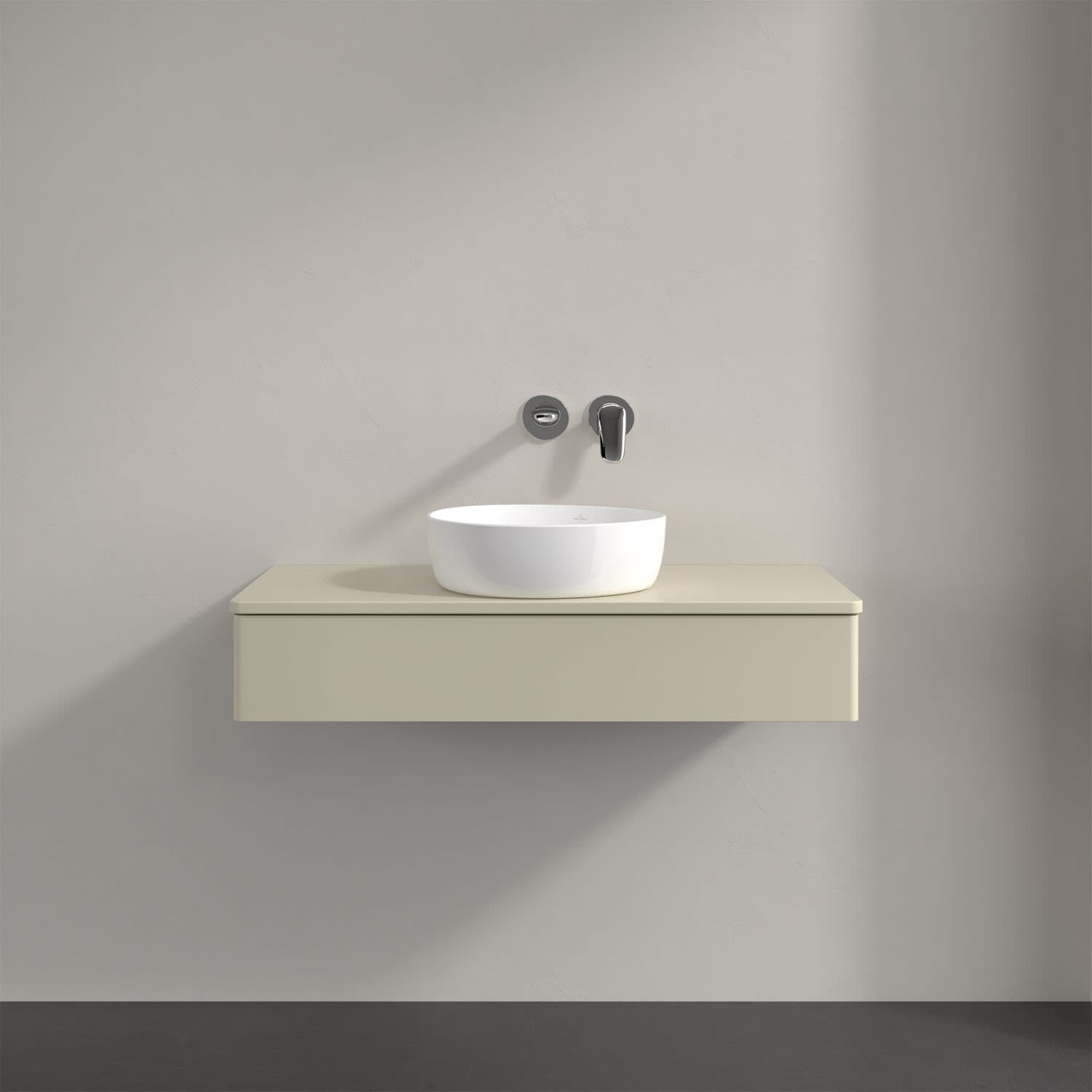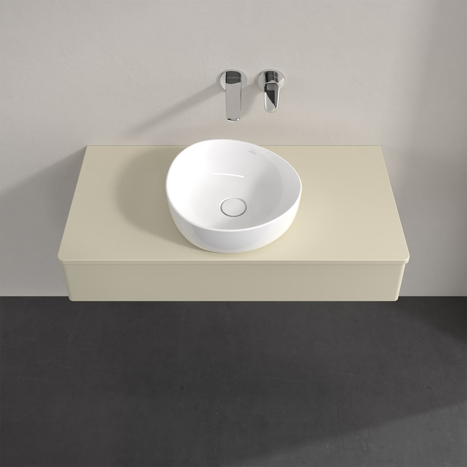 Für diesen Waschbeckenunterschrank stehen Ihnen Aufsatzwaschtische aus verschiedenen Serien zur Verfügung (siehe "Passliste" unter Downloads). Ein ausgewähltes Beispiel finden Sie im Zubehör. Den Waschtisch bitte separat mitbestellen.