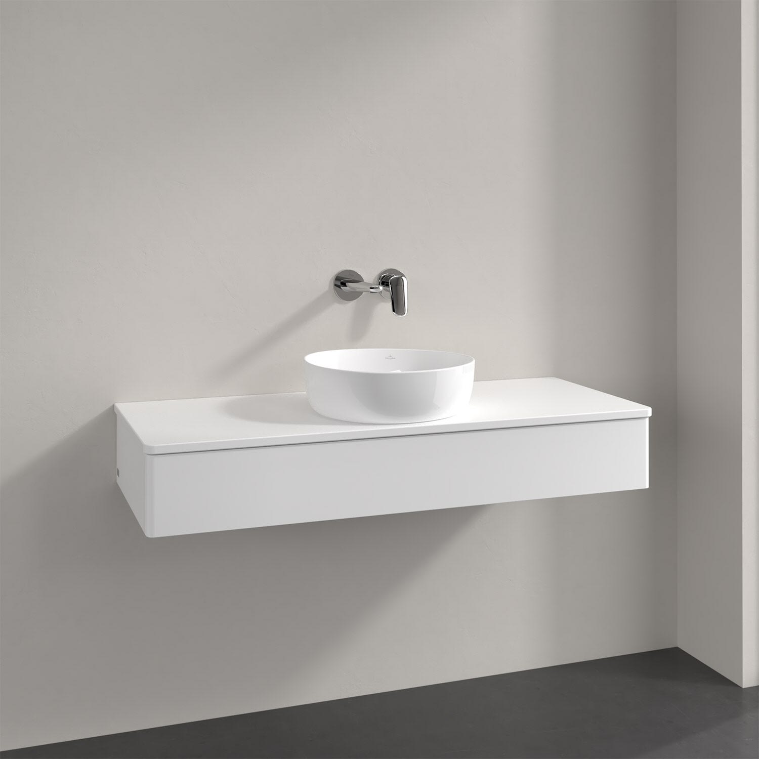 Villeroy & Boch Antao Waschbeckenunterschrank, 120 x 19 cm, 1 Auszug mit LED-Licht, Front ohne Struktur, mit Hahnloch, für Waschtisch mittig
