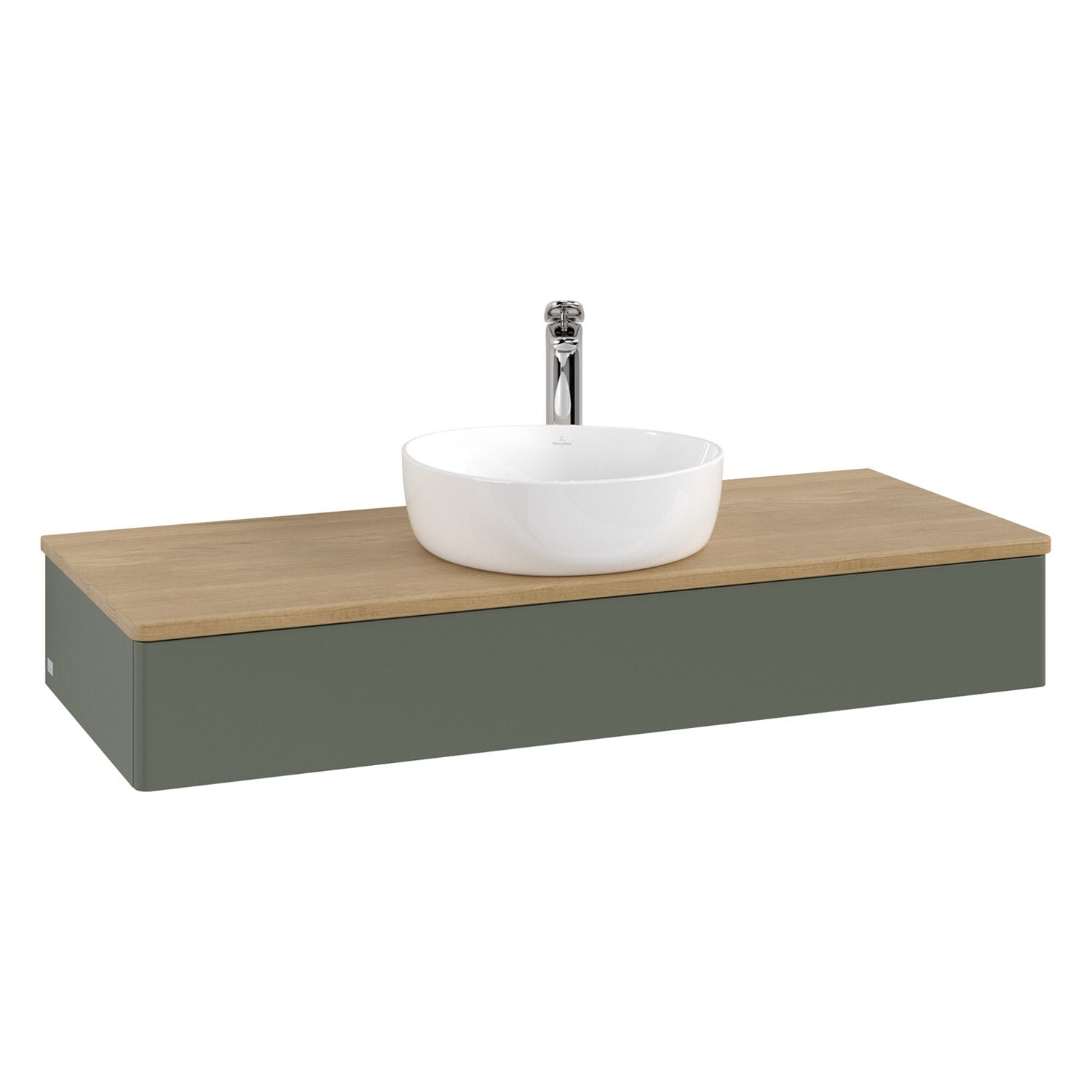 Villeroy & Boch Antao Waschbeckenunterschrank, 120 x 19 cm, 1 Auszug mit LED-Licht, Front ohne Struktur, mit Hahnloch, für Waschtisch mittig