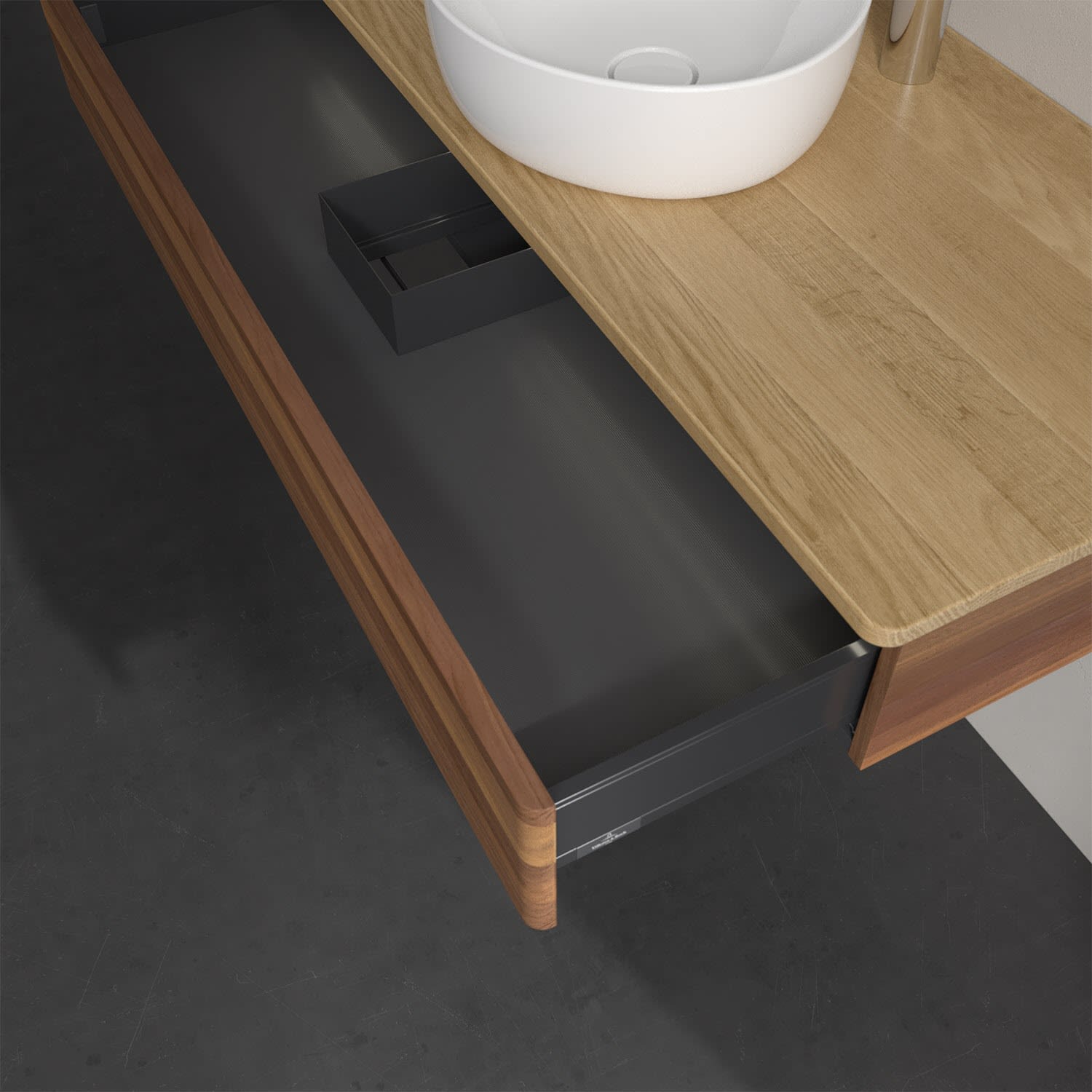 - kein Umfallen oder Verrutschen von Pflegeprodukten in den Schubladen dank rutschhemmendem Boden