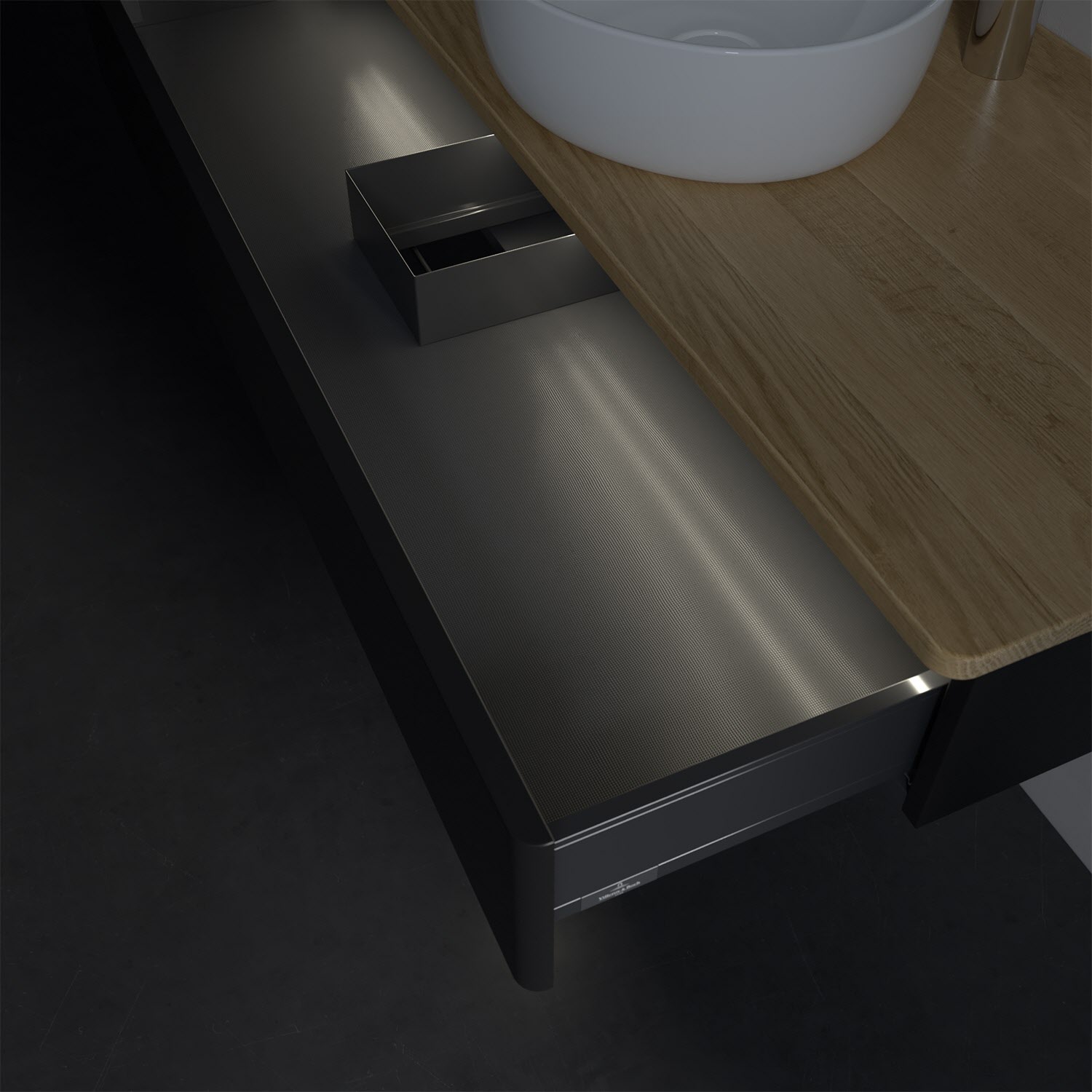 Villeroy & Boch Antao Waschbeckenunterschrank, 120 x 19 cm, 1 Auszug mit LED-Licht, Front ohne Struktur, mit Hahnloch, für Waschtisch mittig