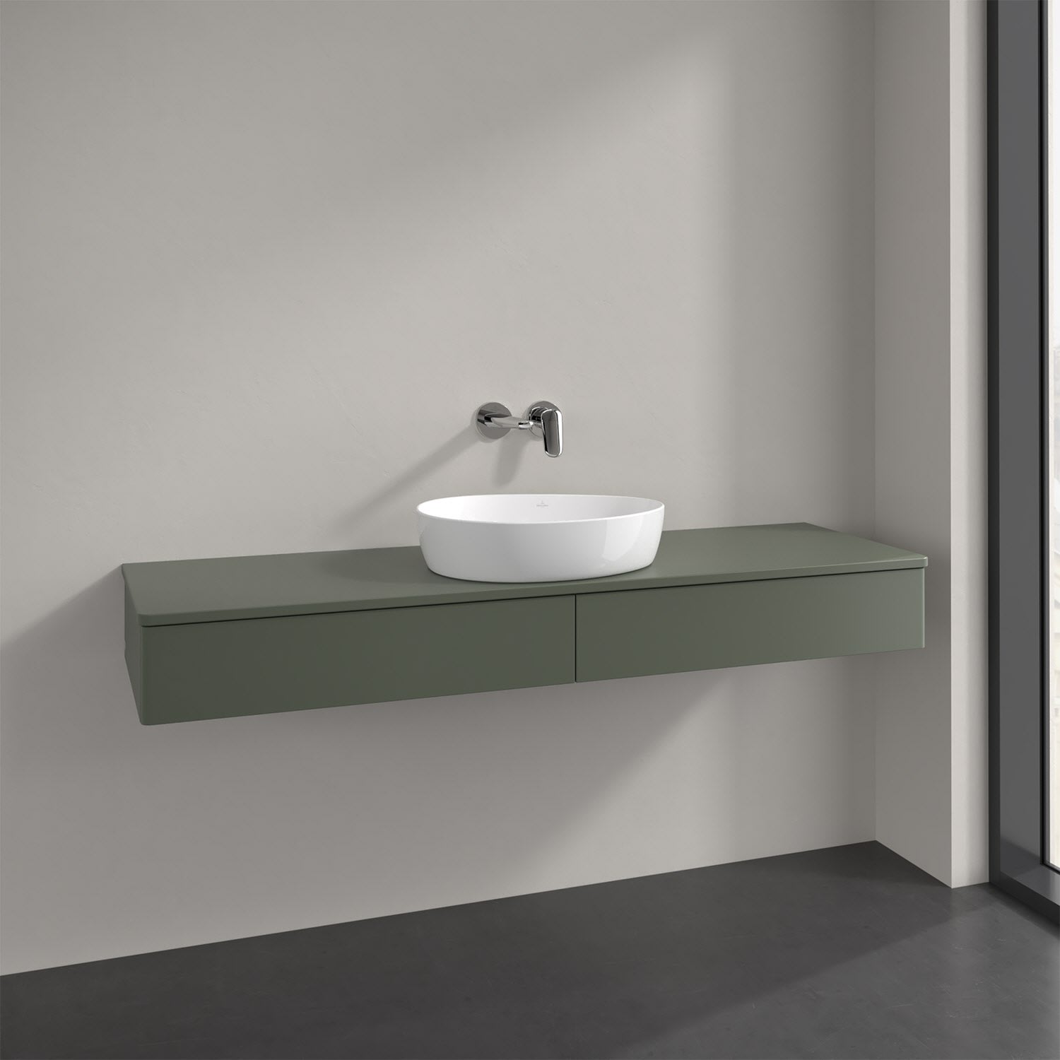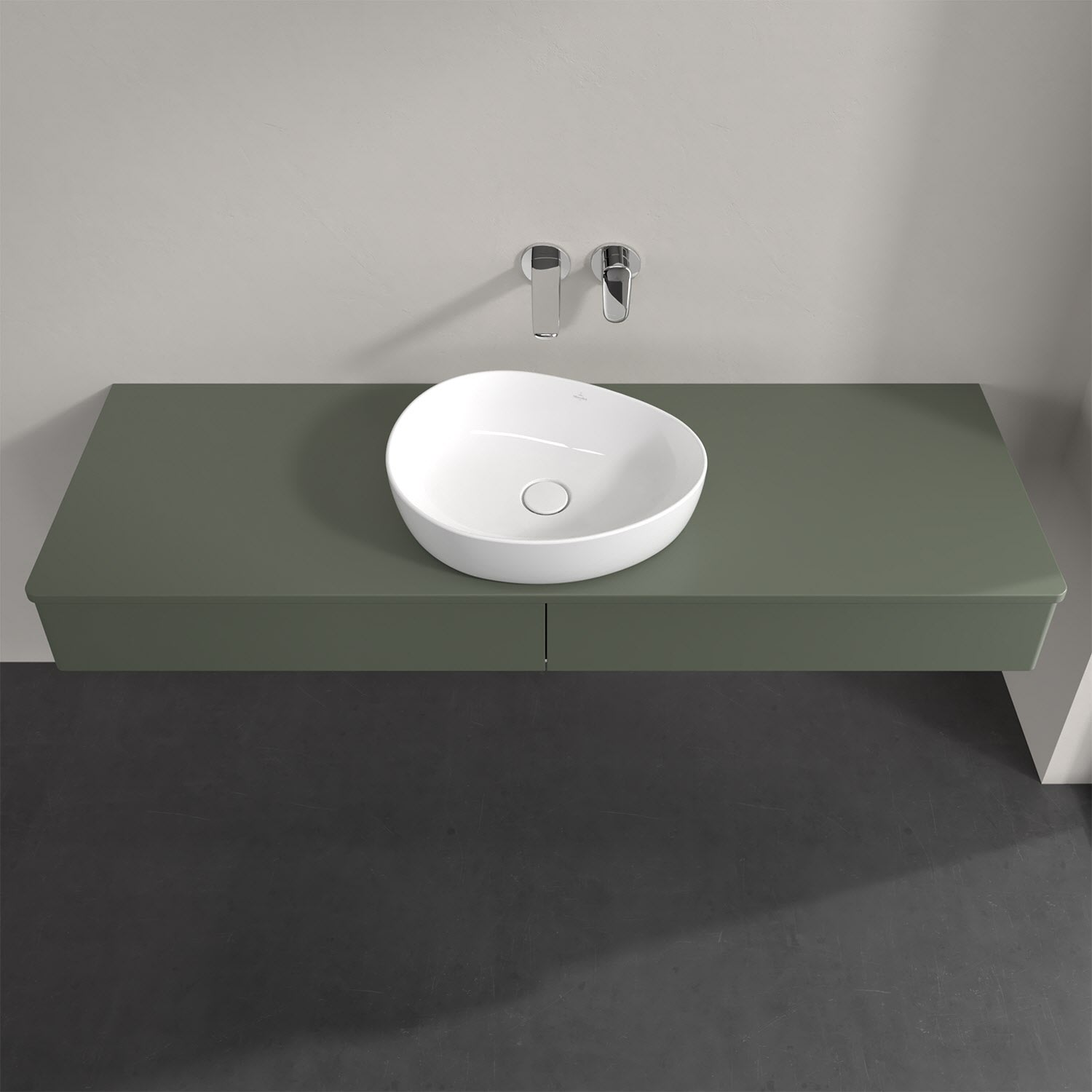 Für diesen Waschbeckenunterschrank stehen Ihnen Aufsatzwaschtische aus verschiedenen Serien zur Verfügung (siehe "Passliste" unter Downloads). Ein ausgewähltes Beispiel finden Sie im Zubehör. Den Waschtisch bitte separat mitbestellen.