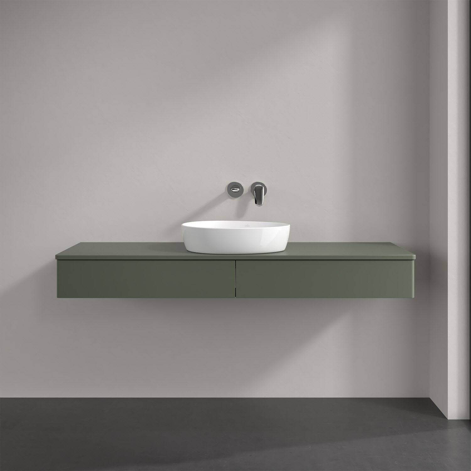 Villeroy & Boch Antao Waschbeckenunterschrank, 160 x 19 cm, 2 Auszüge mit LED-Licht, Front ohne Struktur, mit Hahnloch, für Waschtisch mittig