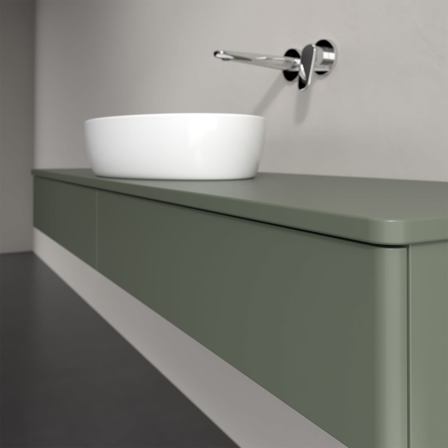 Der wandhängende Antao Waschtischunterschrank bietet mit seinem Auszug und seiner erstaunlichen Größe viel Platz zum Verstauen von Utensilien im Badezimmer. Dank des mittig platzierten Aufsatzwaschtischs gibt es seitlich weiteren Platz für Handtücher, Seifenspender & Co. auf der Waschtischplatte. Inspiriert von der Natur überzeugt der Unterschrank auch optisch mit sanfter Formsprache und abgerundete Kanten. Der grifflose Auszug ist mit der Push-to-Open Funktion ausgestattet und verfügt über einen Antirutschboden, damit Utensilien sicher verstaut werden können. Den Überblick behält man dank der warmweißen Auszugsbeleuchtung, die sich automatisch beim Öffnen einschaltet. Mit seiner Vollauszug- und Selbsteinzug-Funktion ist der Schrank praktisch und leicht zu bedienen. Qualität von Villeroy & Boch! Für eine besonders leichte Pflege sorgt die mehrschichtig deckend lackierte Oberfläche.