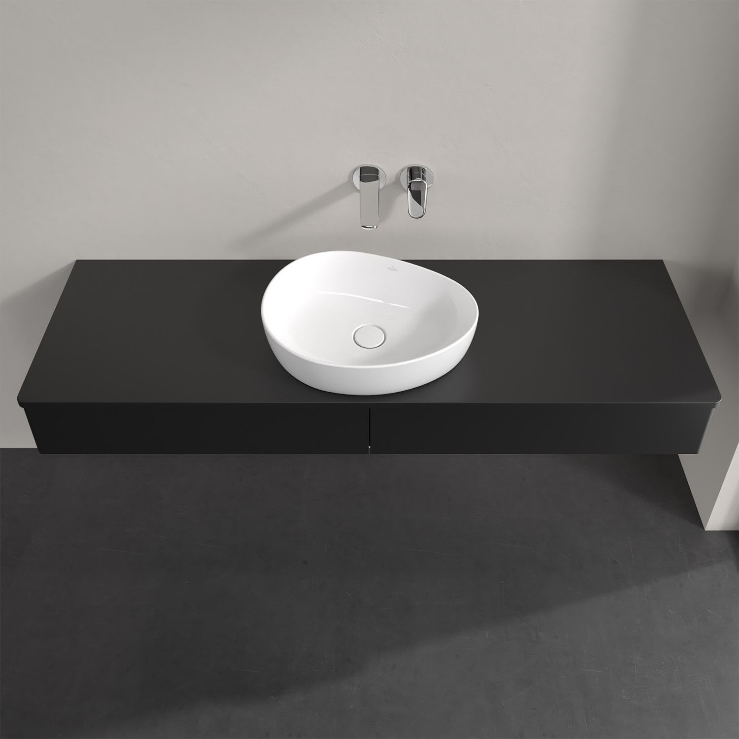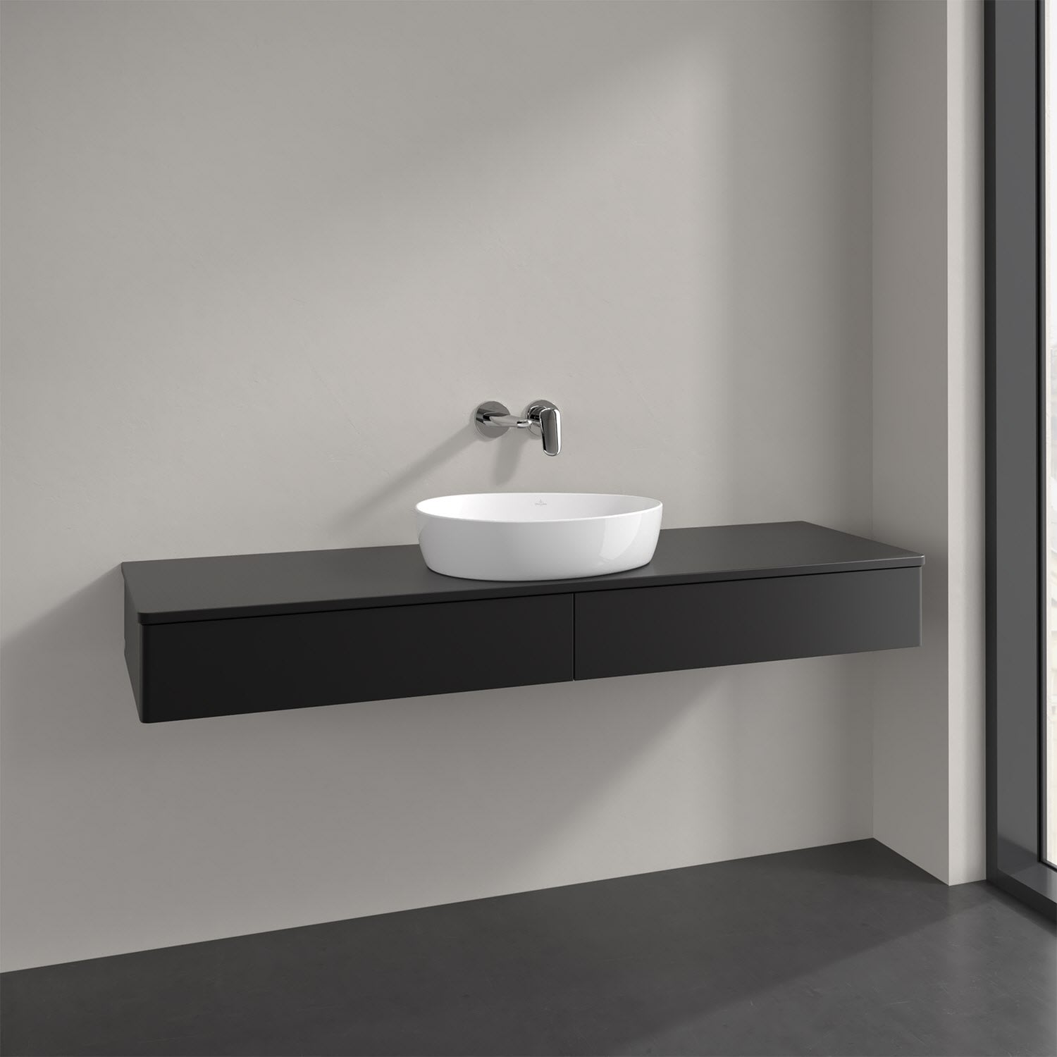 Villeroy & Boch Antao Waschbeckenunterschrank, 160 x 19 cm, 2 Auszüge mit LED-Licht, Front ohne Struktur, mit Hahnloch, für Waschtisch mittig