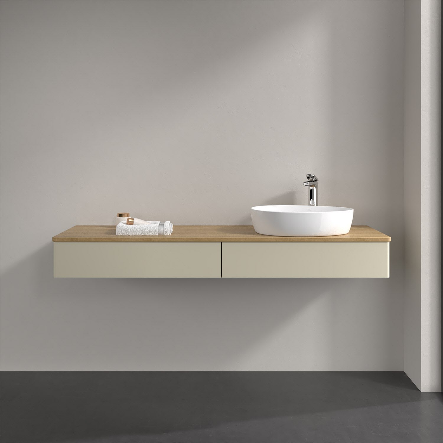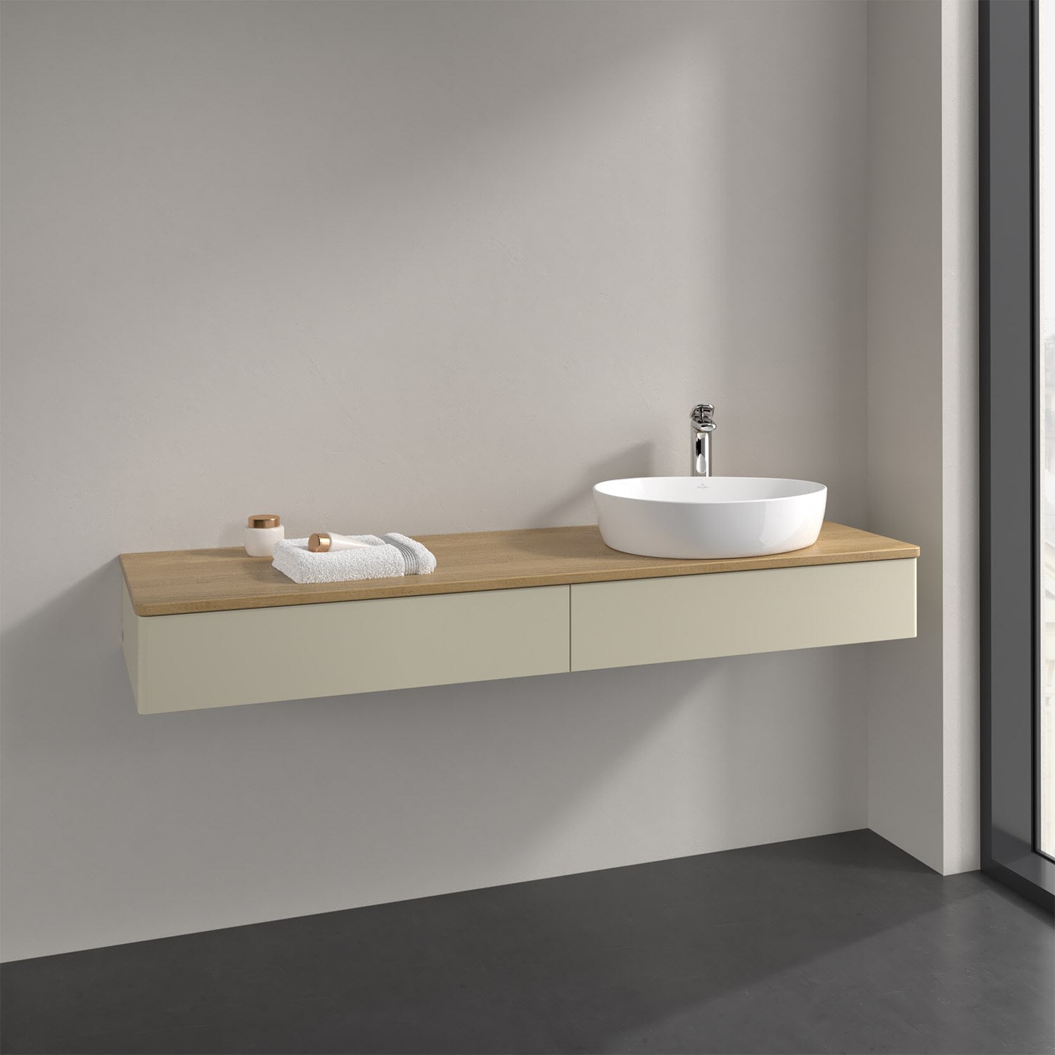 Villeroy & Boch Antao Waschbeckenunterschrank, 160 x 19 cm, 2 Auszüge mit LED-Licht, Front ohne Struktur, mit Hahnloch, für Waschtisch rechts