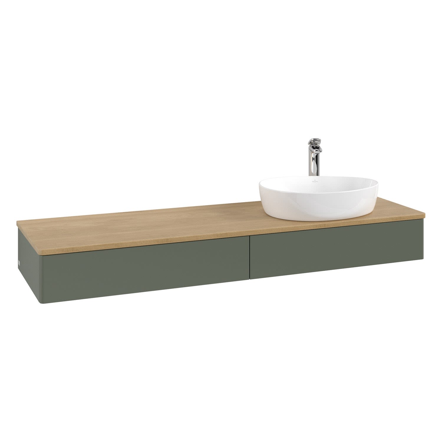 Villeroy & Boch Antao Waschbeckenunterschrank, 160 x 19 cm, 2 Auszüge mit LED-Licht, Front ohne Struktur, mit Hahnloch, für Waschtisch rechts