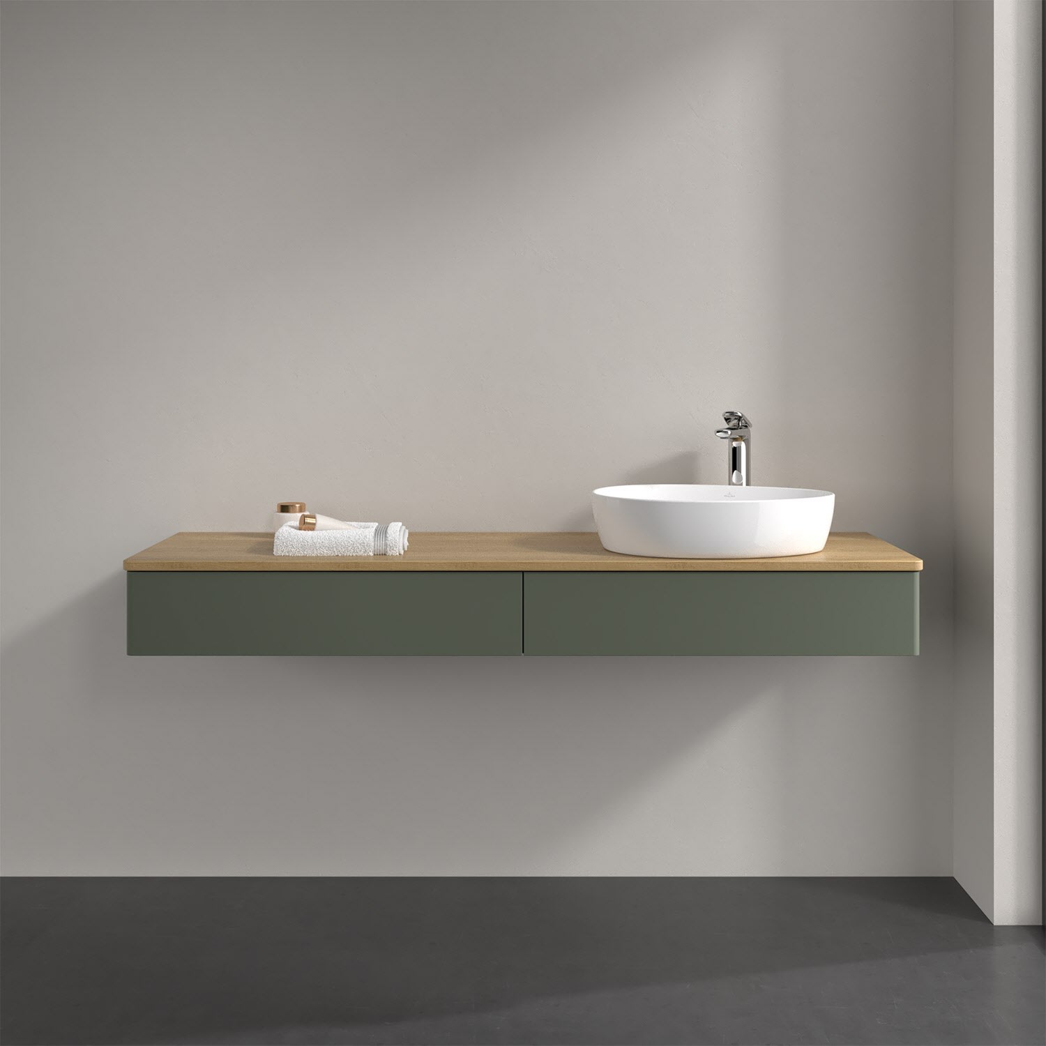 Der wandhängende Antao Waschtischunterschrank bietet mit seinen beiden Auszügen und seiner erstaunlichen Größe viel Platz zum Verstauen von Utensilien im Badezimmer. Dank des seitlich platzierten Aufsatzwaschtischs gibt es daneben weiteren Platz für Handtücher, Seifenspender & Co. auf der Waschtischplatte. Inspiriert von der Natur überzeugt der Unterschrank auch optisch mit sanfter Formsprache und abgerundete Kanten. Die grifflosen Auszüge sind mit der Push-to-Open Funktion ausgestattet und verfügen über einen Antirutschboden, damit Utensilien sicher verstaut werden können. Den Überblick behält man dank der warmweißen Auszugsbeleuchtung, die sich automatisch beim Öffnen einschaltet. Mit seiner Vollauszug- und Selbsteinzug-Funktion ist der Schrank praktisch und leicht zu bedienen. Qualität von Villeroy & Boch! Für eine besonders leichte Pflege sorgt die mehrschichtig deckend lackierte Oberfläche. Bei der Ausführung in Massivholz wird dank des verarbeiteten Massivholzes jedes Möbel zu einem Unikat, das sich durch das lebendige Naturmaterial durch seine einzigartige Struktur und Maserung auszeichnet.