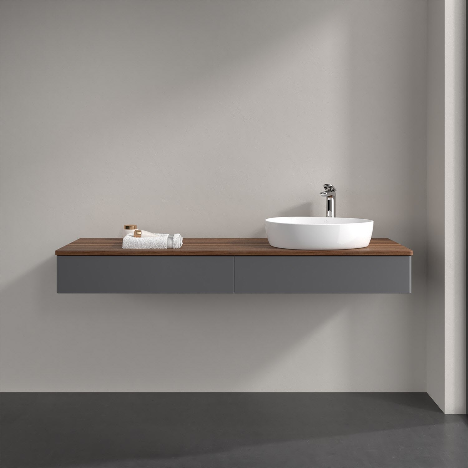 Villeroy & Boch Antao Waschbeckenunterschrank, 160 x 19 cm, 2 Auszüge mit LED-Licht, Front ohne Struktur, mit Hahnloch, für Waschtisch rechts