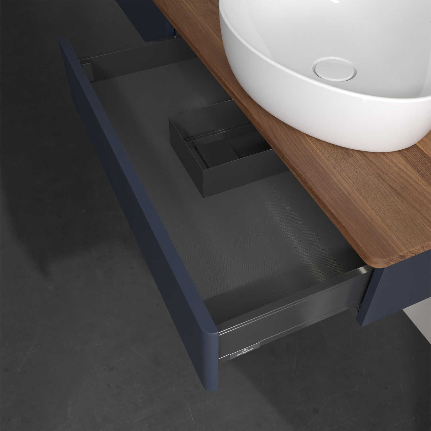 Villeroy & Boch Antao Waschbeckenunterschrank, 160 x 19 cm, 2 Auszüge mit LED-Licht, Front ohne Struktur, mit Hahnloch, für Waschtisch rechts