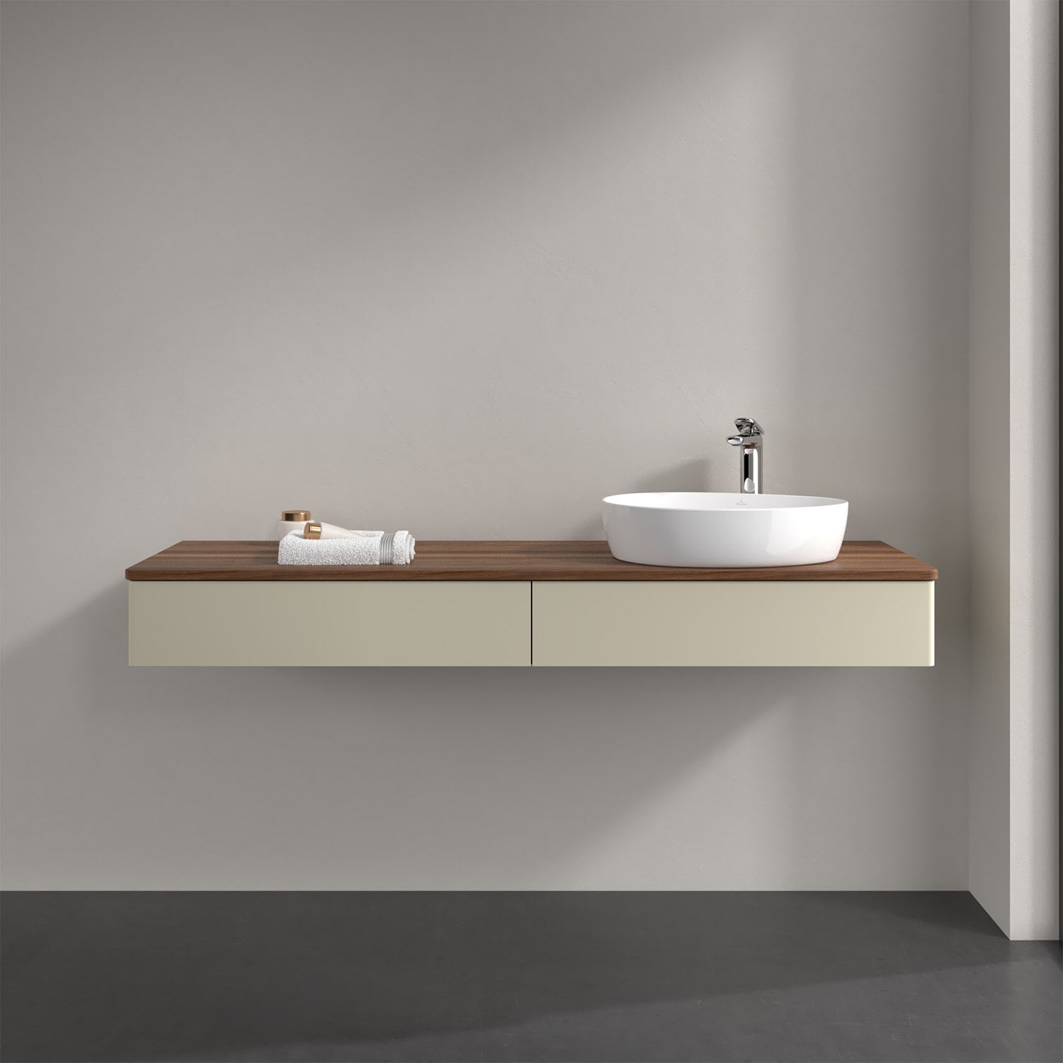 Villeroy & Boch Antao Waschbeckenunterschrank, 160 x 19 cm, 2 Auszüge mit LED-Licht, Front ohne Struktur, mit Hahnloch, für Waschtisch rechts