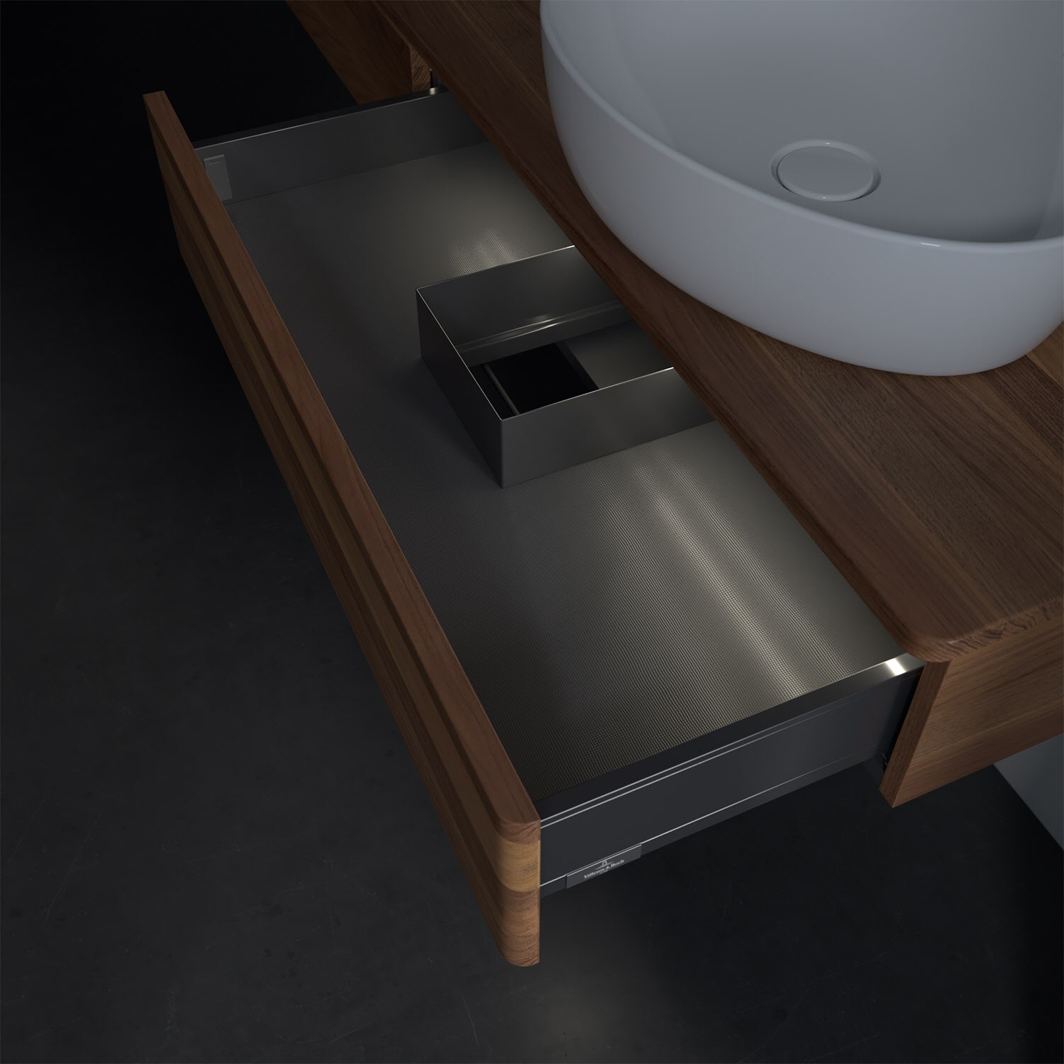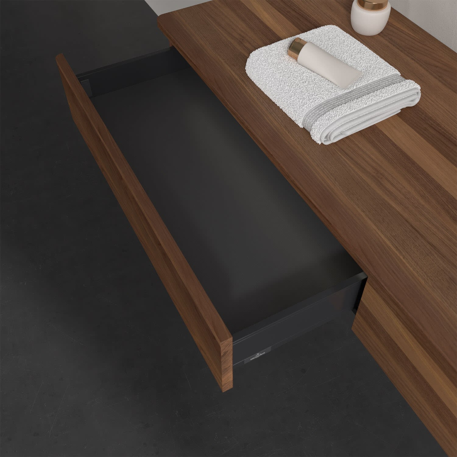 - kein Umfallen oder Verrutschen von Pflegeprodukten in den Schubladen dank rutschhemmendem Boden