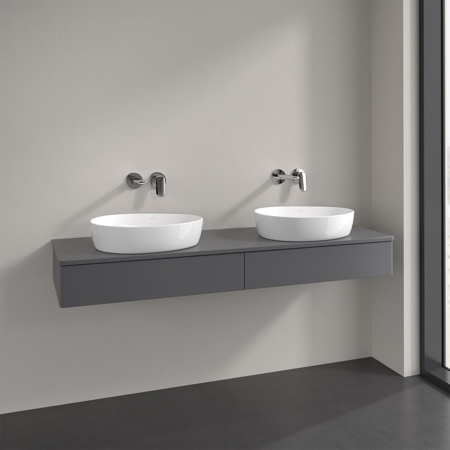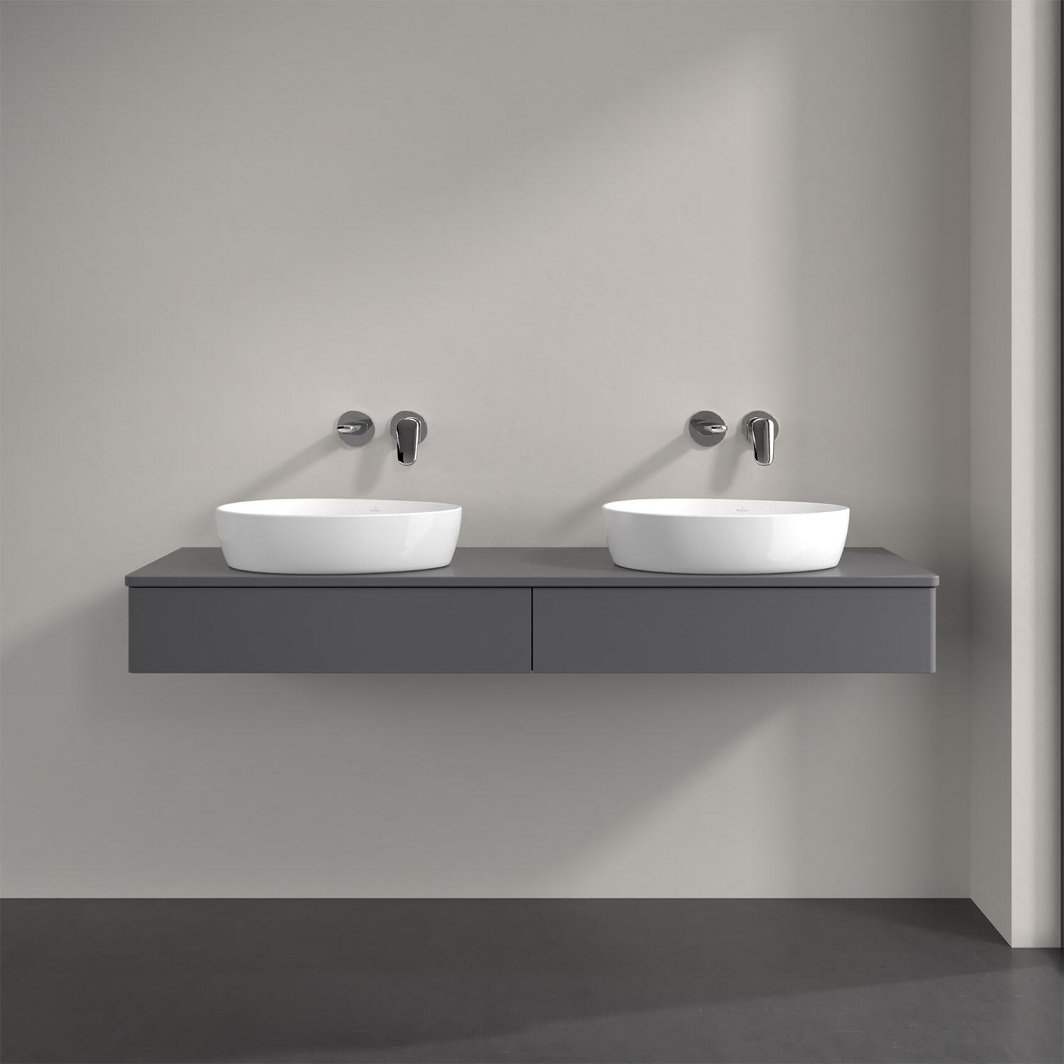 Villeroy & Boch Antao Waschbeckenunterschrank, 160 x 19 cm, 2 Auszüge mit LED-Licht, Front ohne Struktur, mit Hahnloch, für Waschtisch links und recht