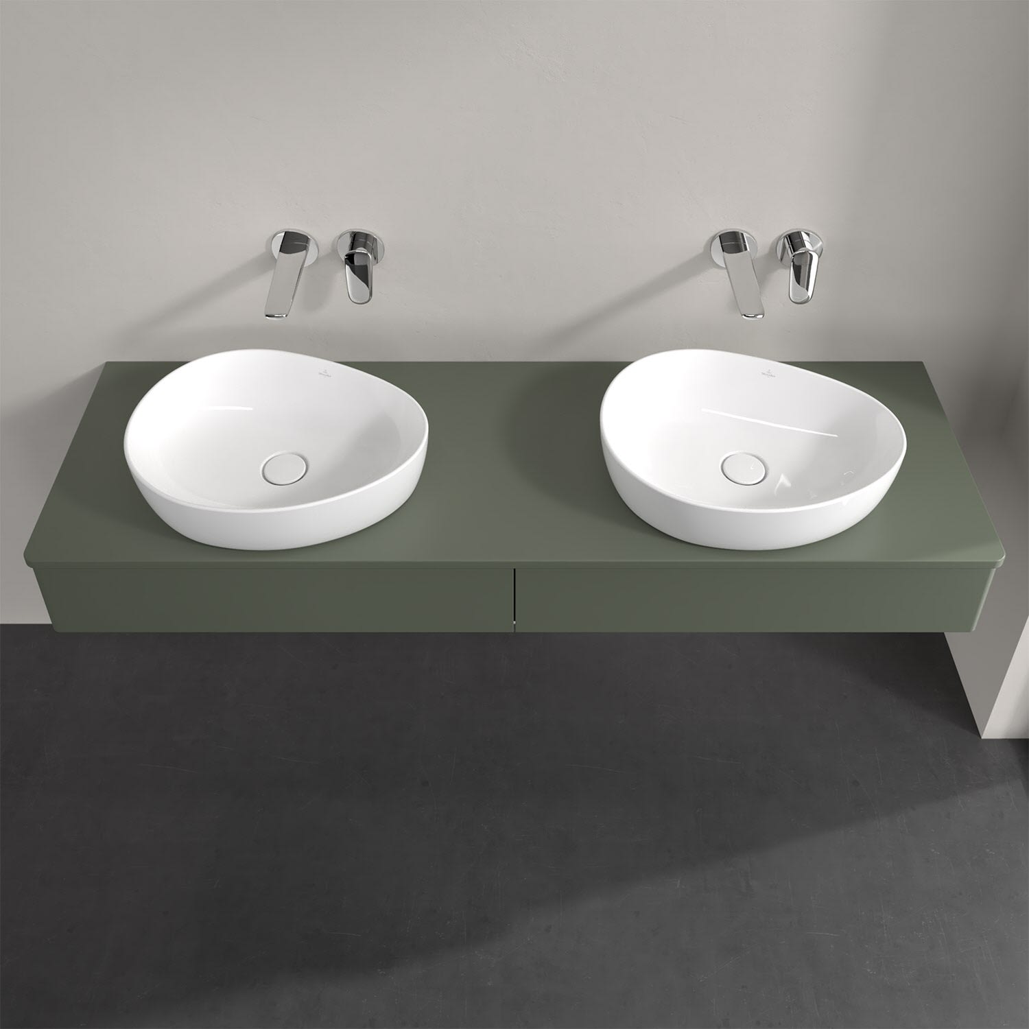 Villeroy & Boch Antao Waschbeckenunterschrank, 160 x 19 cm, 2 Auszüge mit LED-Licht, Front ohne Struktur, mit Hahnloch, für Waschtisch links und recht
