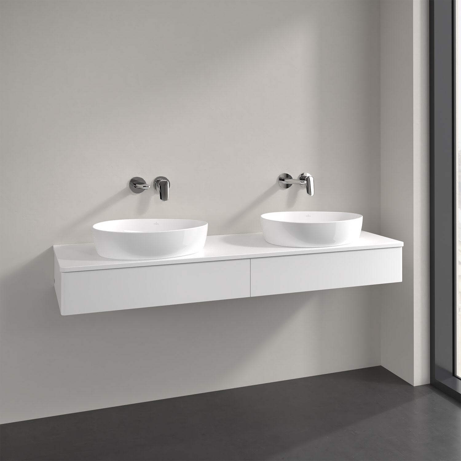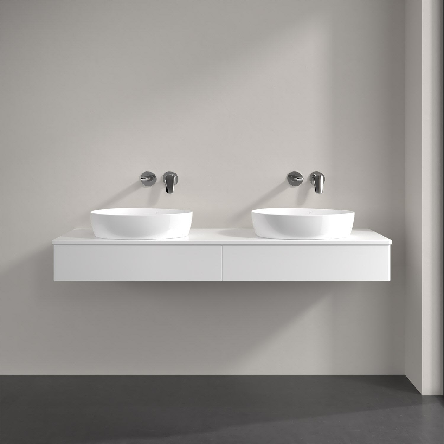 Villeroy & Boch Antao Waschbeckenunterschrank, 160 x 19 cm, 2 Auszüge mit LED-Licht, Front ohne Struktur, mit Hahnloch, für Waschtisch links und recht