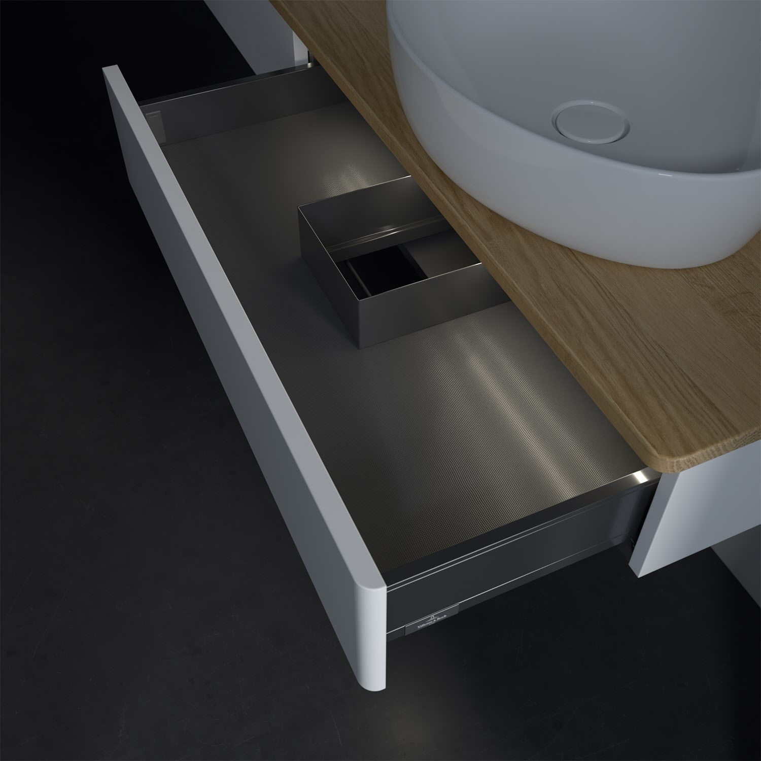 - kein Umfallen oder Verrutschen von Pflegeprodukten in den Schubladen dank rutschhemmendem Boden