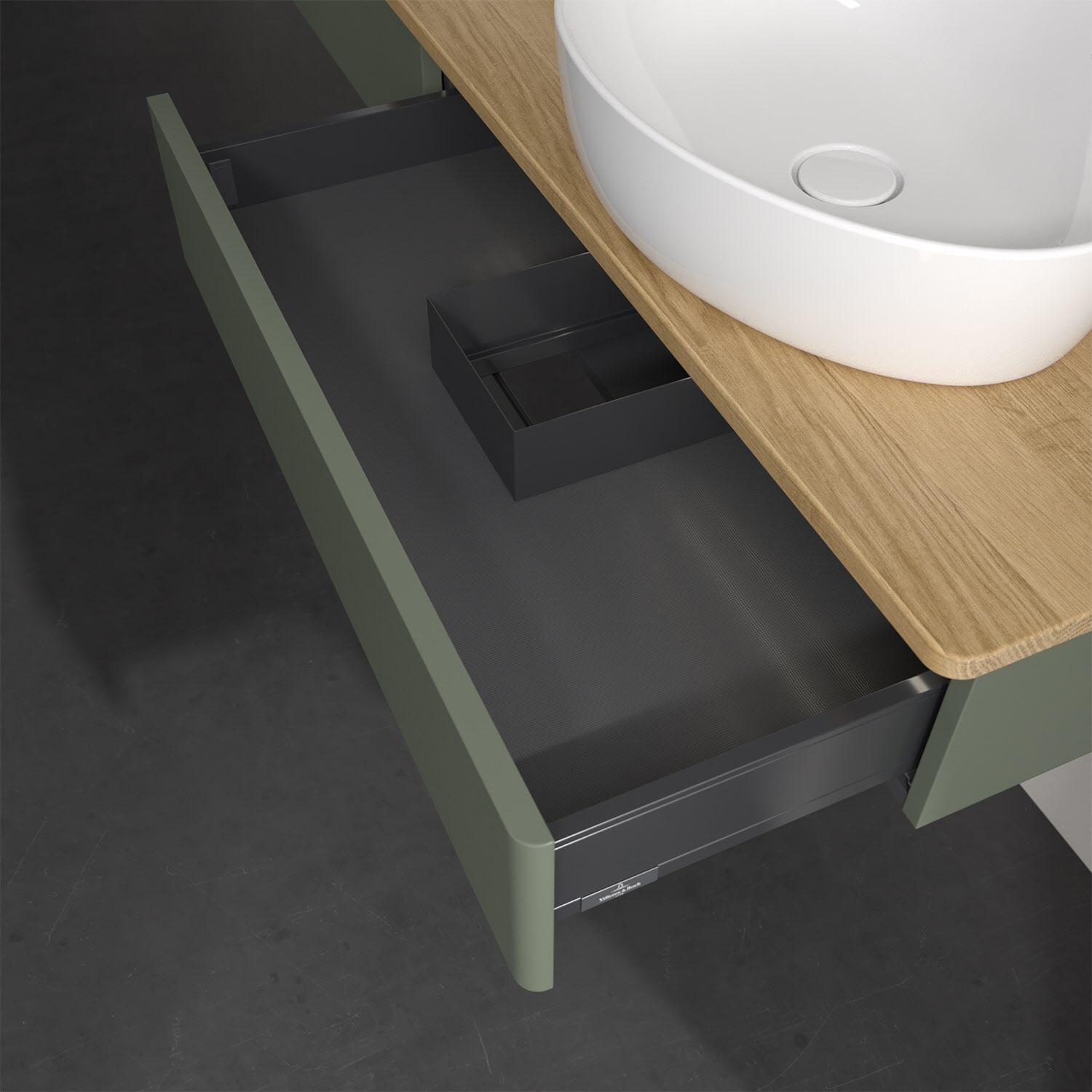 Der wandhängende Antao Waschtischunterschrank für zwei Aufsatzwaschtische bietet mit seinen beiden Auszügen und seiner erstaunlichen Größe viel Platz zum Verstauen von Utensilien im Badezimmer. Inspiriert von der Natur überzeugt der Unterschrank auch optisch mit sanfter Formsprache und abgerundete Kanten. Die grifflosen Auszüge sind mit der Push-to-Open Funktion ausgestattet und verfügen über einen Antirutschboden, damit Utensilien sicher verstaut werden können. Den Überblick behält man dank der warmweißen Auszugsbeleuchtung, die sich automatisch beim Öffnen einschaltet. Mit seiner Vollauszug- und Selbsteinzug-Funktion ist der Schrank praktisch und leicht zu bedienen. Qualität von Villeroy & Boch! Für eine besonders leichte Pflege sorgt die mehrschichtig deckend lackierte Oberfläche. Bei der Ausführung in Massivholz wird dank des verarbeiteten Massivholzes jedes Möbel zu einem Unikat, das sich durch das lebendige Naturmaterial durch seine einzigartige Struktur und Maserung auszeichnet.