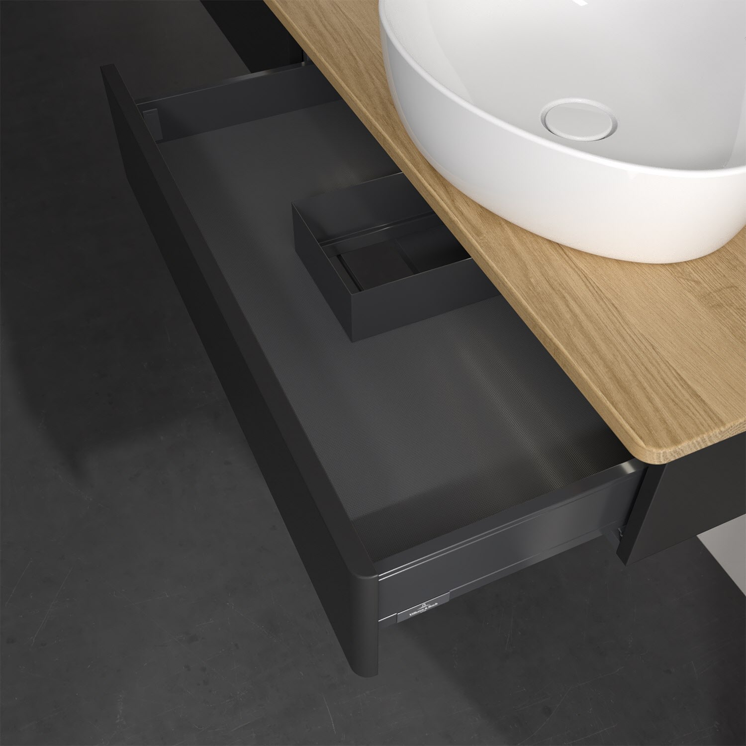 Villeroy & Boch Antao Waschbeckenunterschrank, 160 x 19 cm, 2 Auszüge mit LED-Licht, Front ohne Struktur, mit Hahnloch, für Waschtisch links und recht