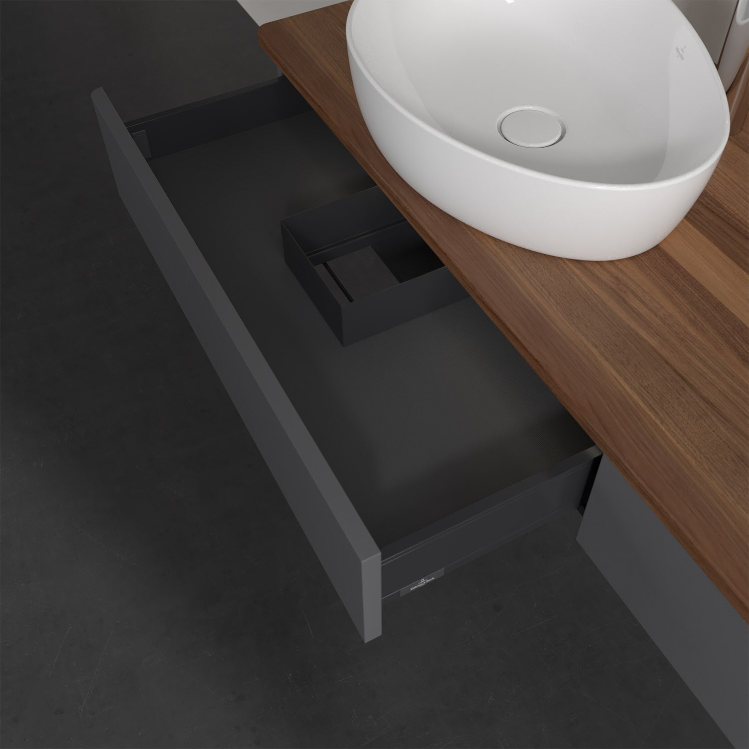 Villeroy & Boch Antao Waschbeckenunterschrank, 160 x 19 cm, 2 Auszüge mit LED-Licht, Front ohne Struktur, mit Hahnloch, für Waschtisch links und recht