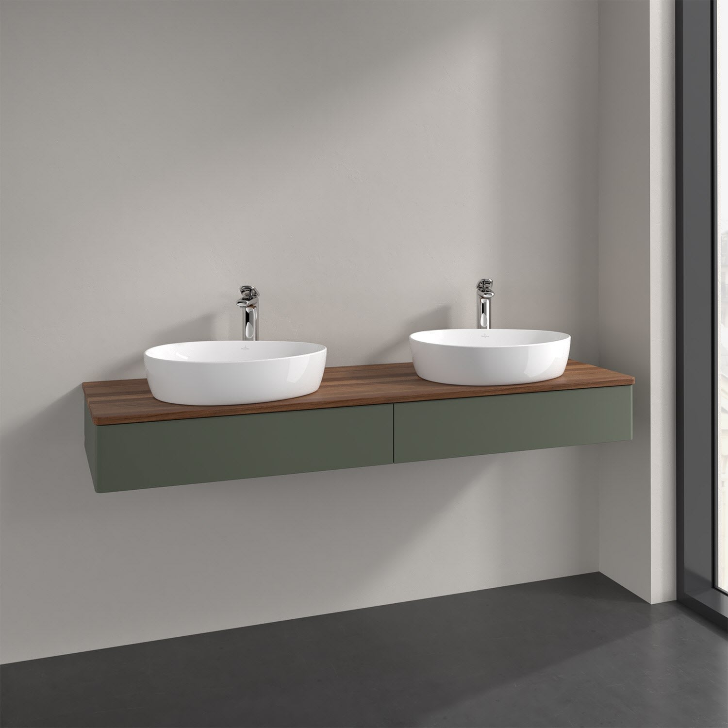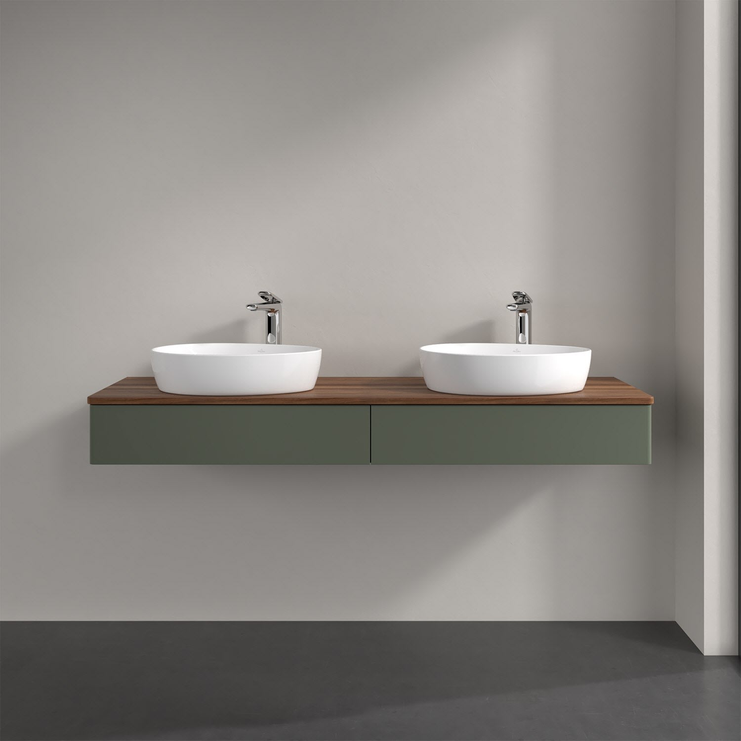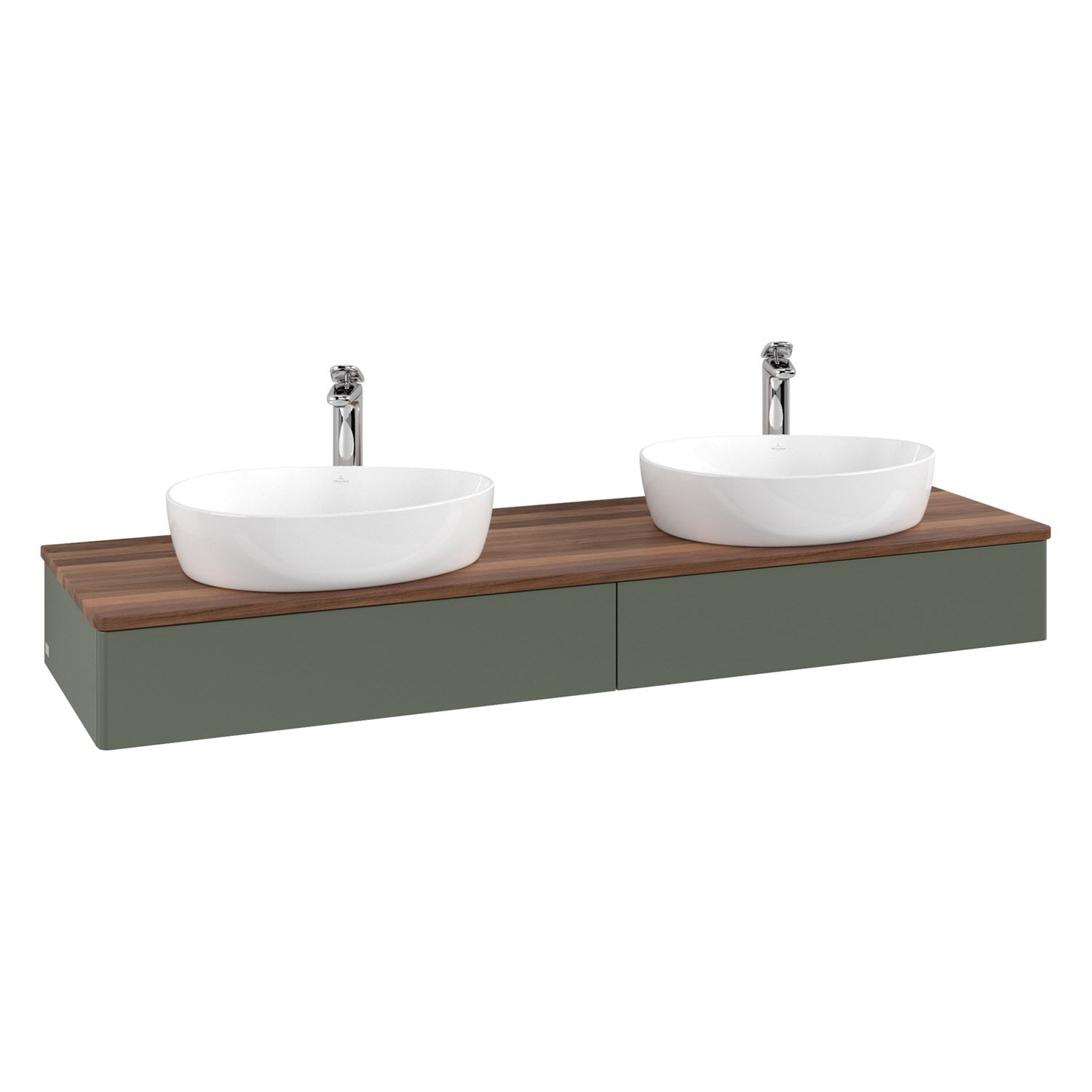 Der wandhängende Antao Waschtischunterschrank für zwei Aufsatzwaschtische bietet mit seinen beiden Auszügen und seiner erstaunlichen Größe viel Platz zum Verstauen von Utensilien im Badezimmer. Inspiriert von der Natur überzeugt der Unterschrank auch optisch mit sanfter Formsprache und abgerundete Kanten. Die grifflosen Auszüge sind mit der Push-to-Open Funktion ausgestattet und verfügen über einen Antirutschboden, damit Utensilien sicher verstaut werden können. Den Überblick behält man dank der warmweißen Auszugsbeleuchtung, die sich automatisch beim Öffnen einschaltet. Mit seiner Vollauszug- und Selbsteinzug-Funktion ist der Schrank praktisch und leicht zu bedienen. Qualität von Villeroy & Boch! Für eine besonders leichte Pflege sorgt die mehrschichtig deckend lackierte Oberfläche. Bei der Ausführung in Massivholz wird dank des verarbeiteten Massivholzes jedes Möbel zu einem Unikat, das sich durch das lebendige Naturmaterial durch seine einzigartige Struktur und Maserung auszeichnet.