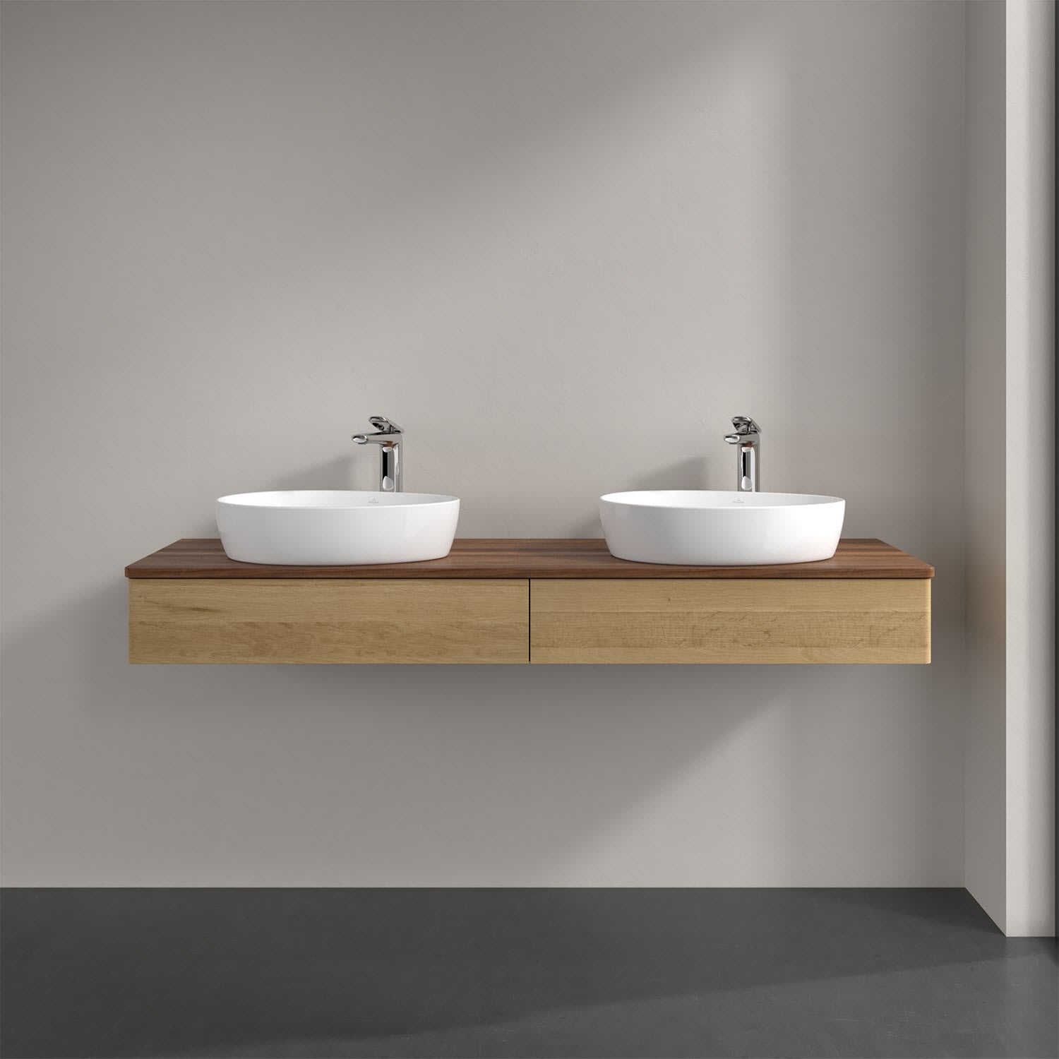 Villeroy & Boch Antao Waschbeckenunterschrank, 160 x 19 cm, 2 Auszüge mit LED-Licht, Front ohne Struktur, mit Hahnloch, für Waschtisch links und recht