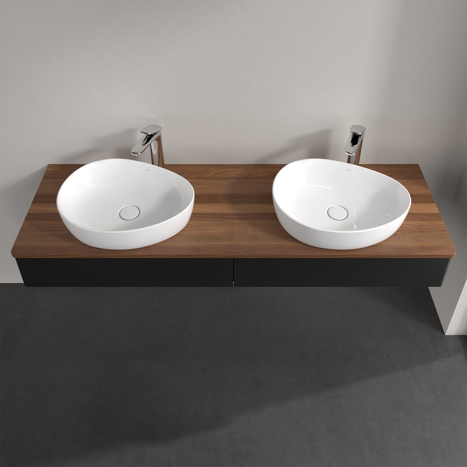 Für diesen Waschbeckenunterschrank stehen Ihnen Aufsatzwaschtische aus verschiedenen Serien zur Verfügung (siehe "Passliste" unter Downloads). Ein ausgewähltes Beispiel finden Sie im Zubehör. Den Waschtisch bitte separat mitbestellen.