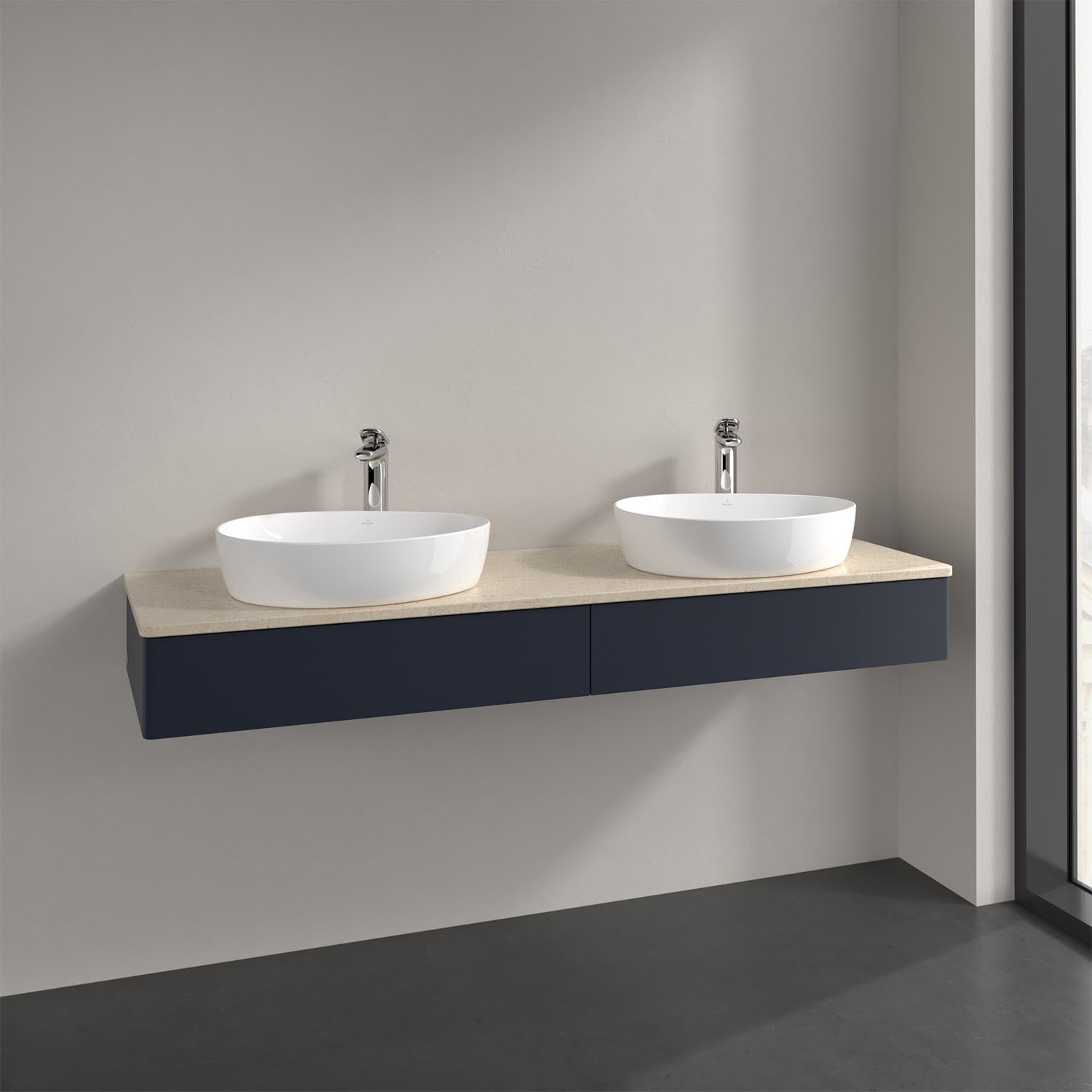 Villeroy & Boch Antao Waschbeckenunterschrank, 160 x 19 cm, 2 Auszüge mit LED-Licht, Front ohne Struktur, mit Hahnloch, für Waschtisch links und recht