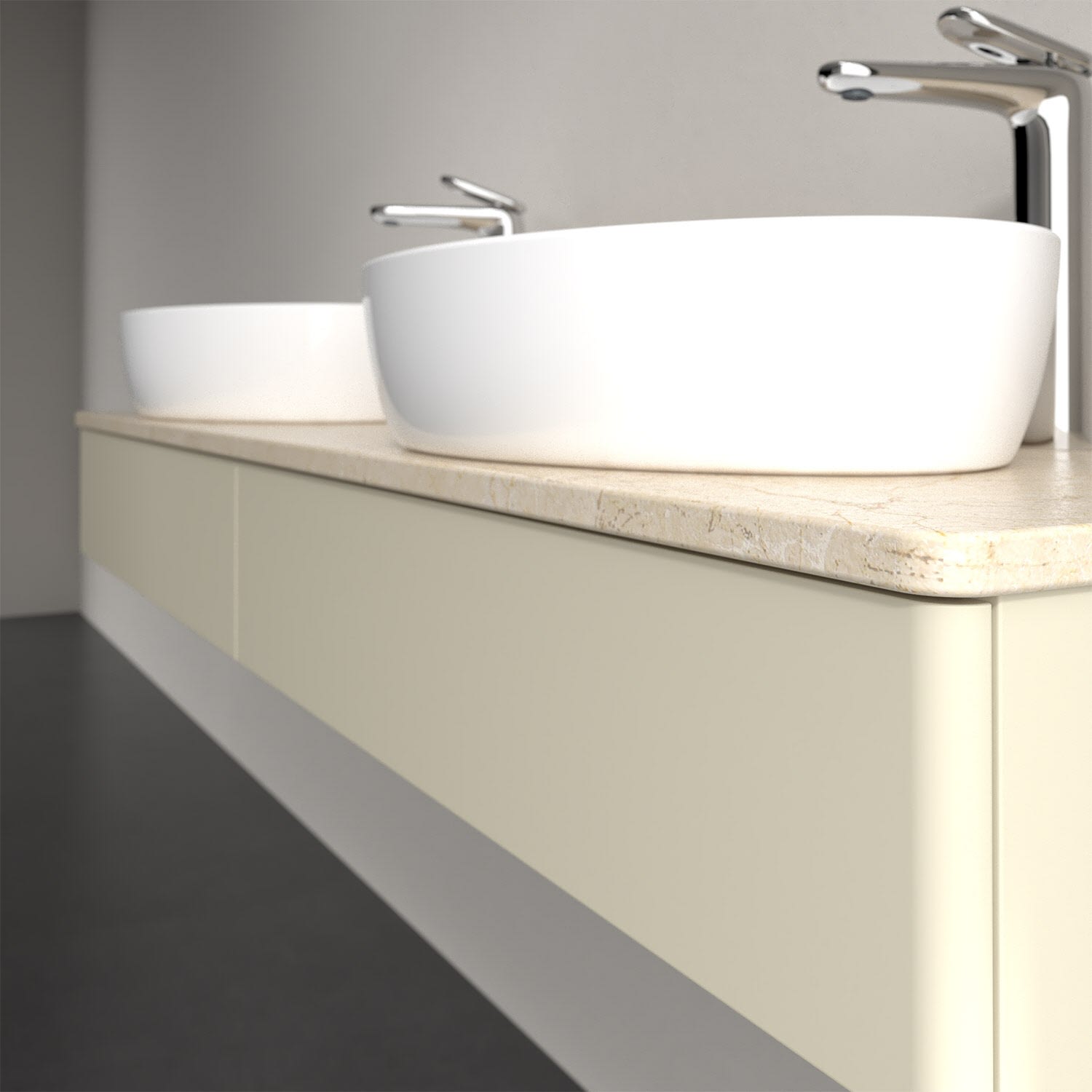 Villeroy & Boch Antao Waschbeckenunterschrank, 160 x 19 cm, 2 Auszüge mit LED-Licht, Front ohne Struktur, mit Hahnloch, für Waschtisch links und recht