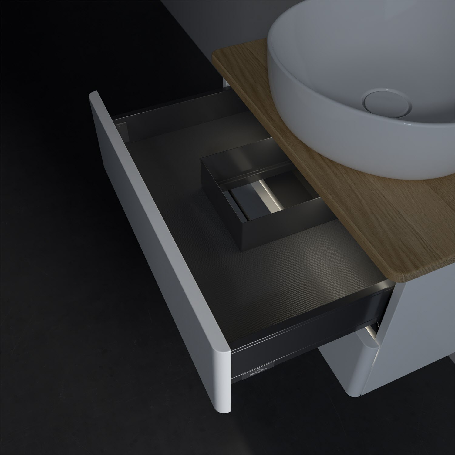 - kein Umfallen oder Verrutschen von Pflegeprodukten in den Schubladen dank rutschhemmendem Boden
