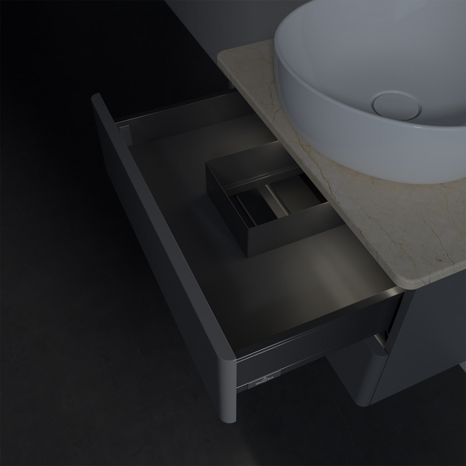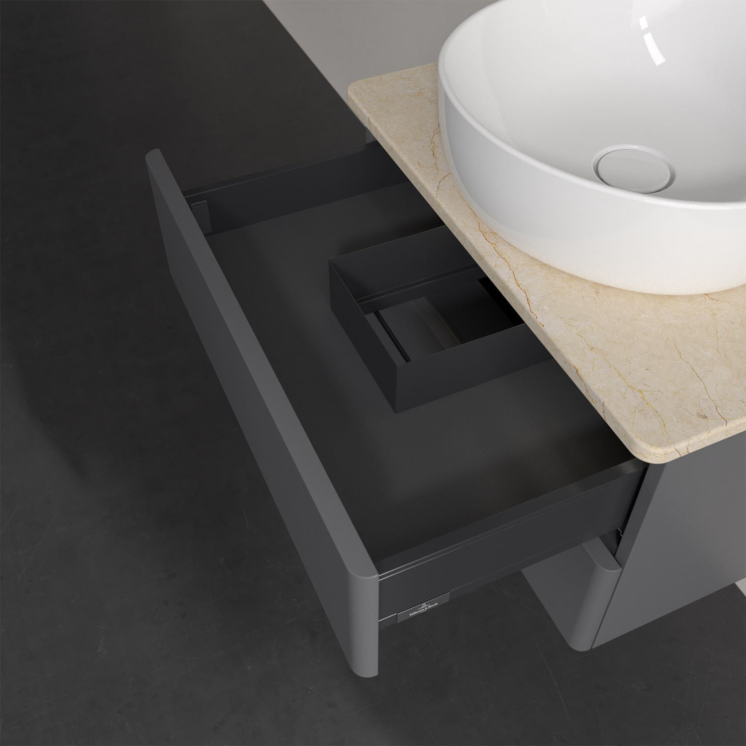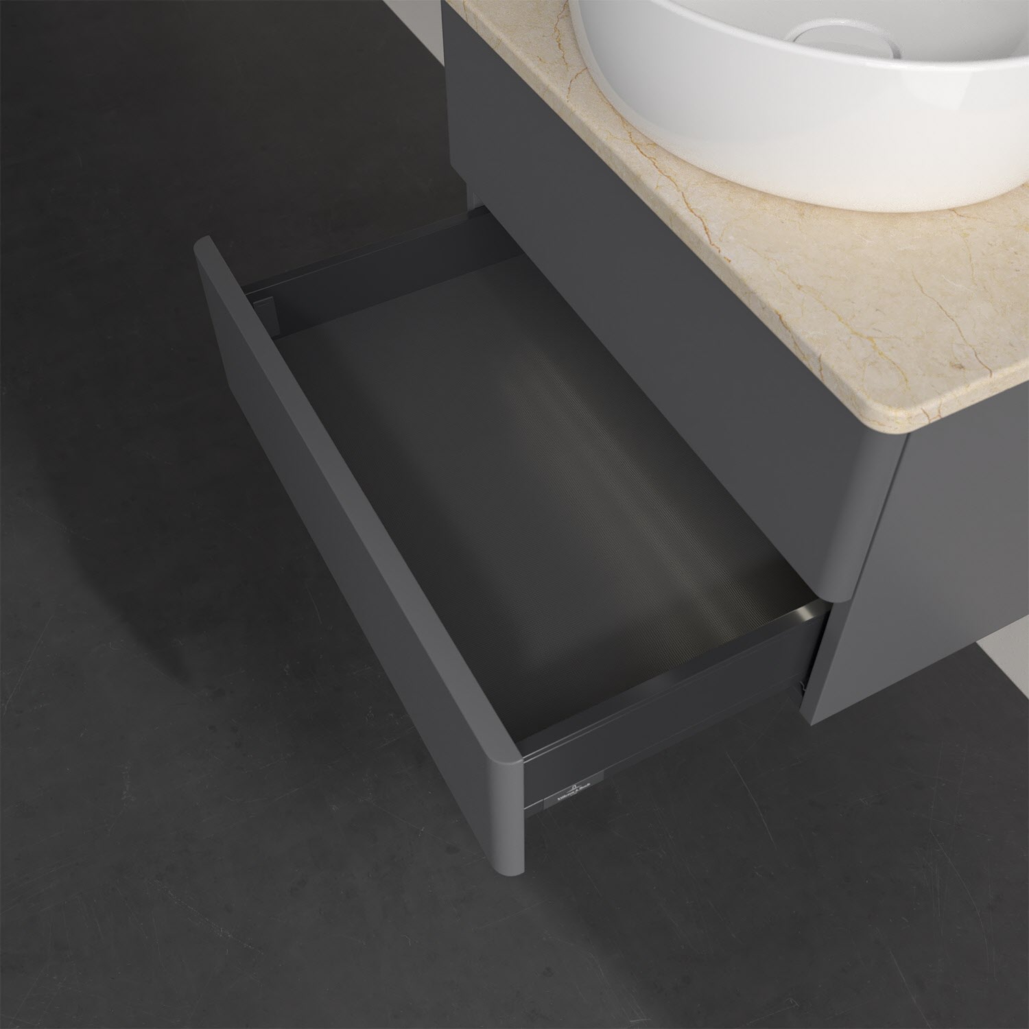 - kein Umfallen oder Verrutschen von Pflegeprodukten in den Schubladen dank rutschhemmendem Boden