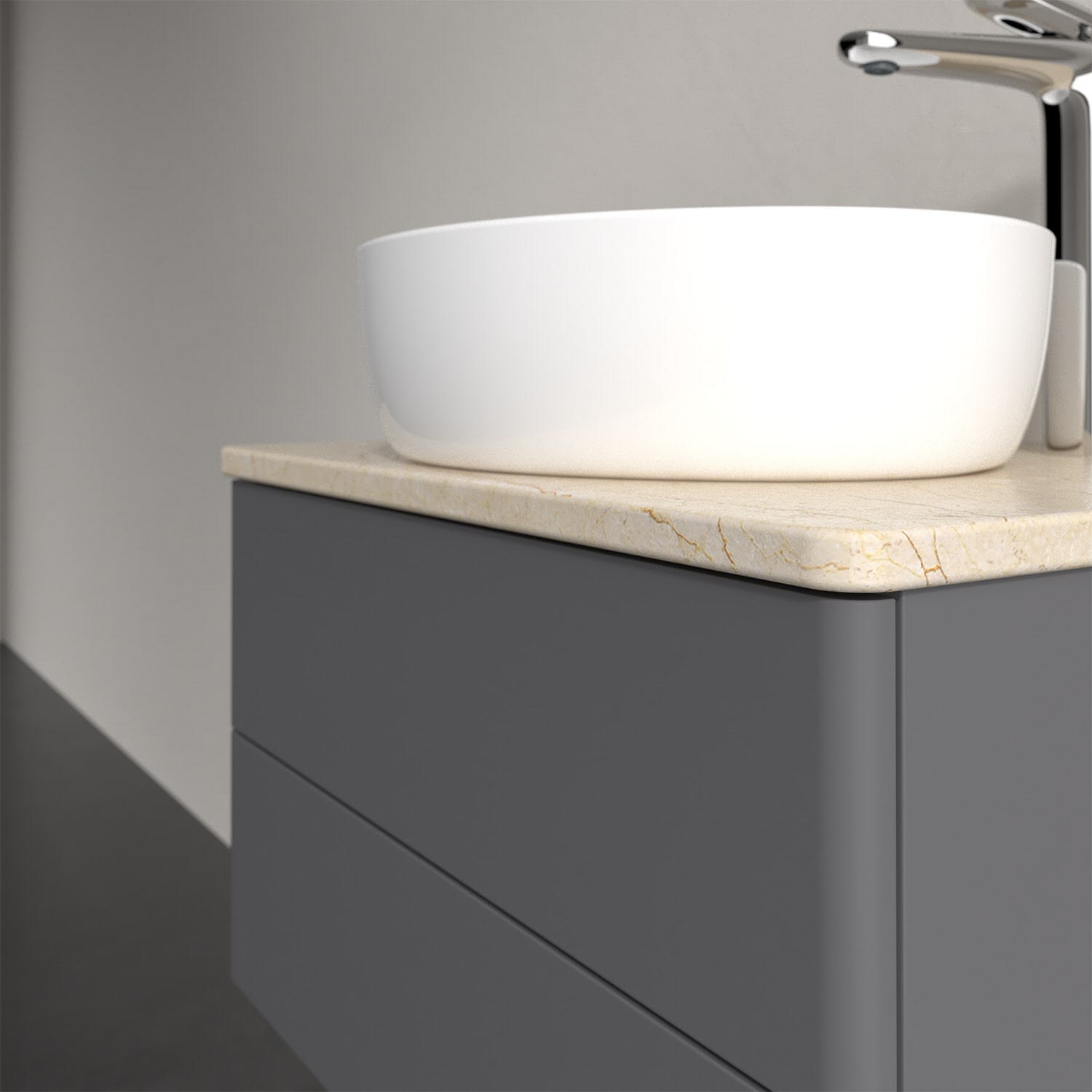 Für diesen Waschbeckenunterschrank stehen Ihnen Aufsatzwaschtische aus verschiedenen Serien zur Verfügung (siehe "Passliste" unter Downloads). Ein ausgewähltes Beispiel finden Sie im Zubehör. Den Waschtisch bitte separat mitbestellen.