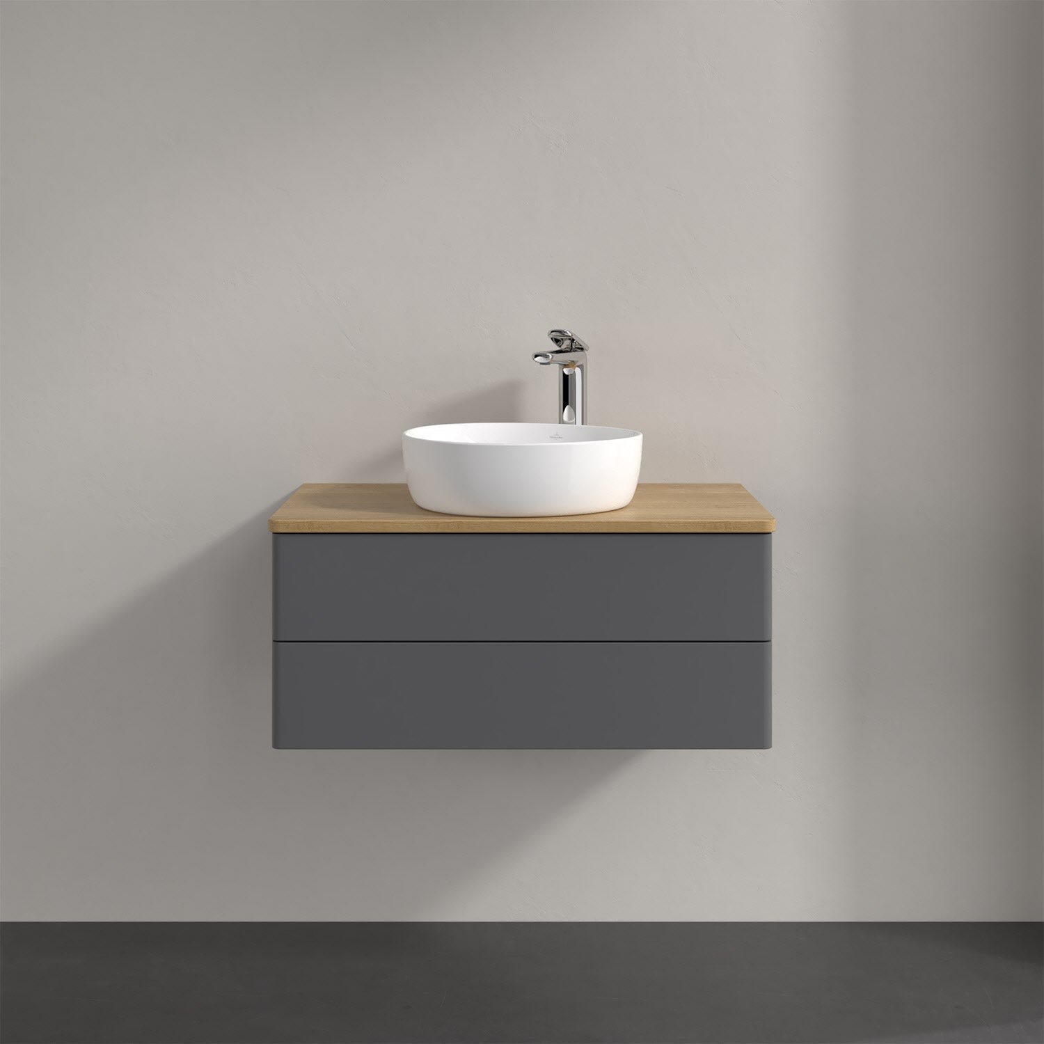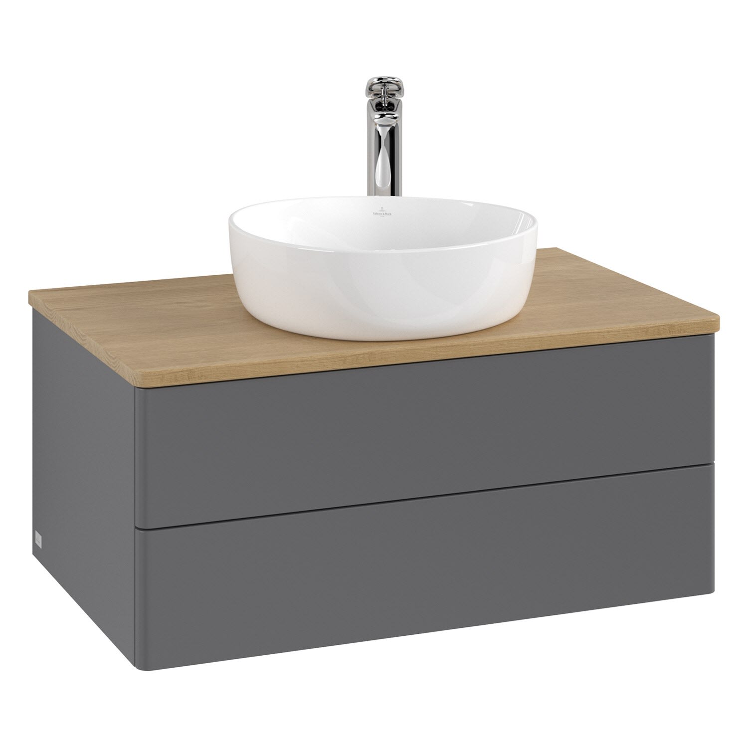 Villeroy & Boch Antao Waschbeckenunterschrank, 80 x 36 cm, 2 Auszüge mit LED-Licht, Front ohne Struktur, mit Hahnloch
