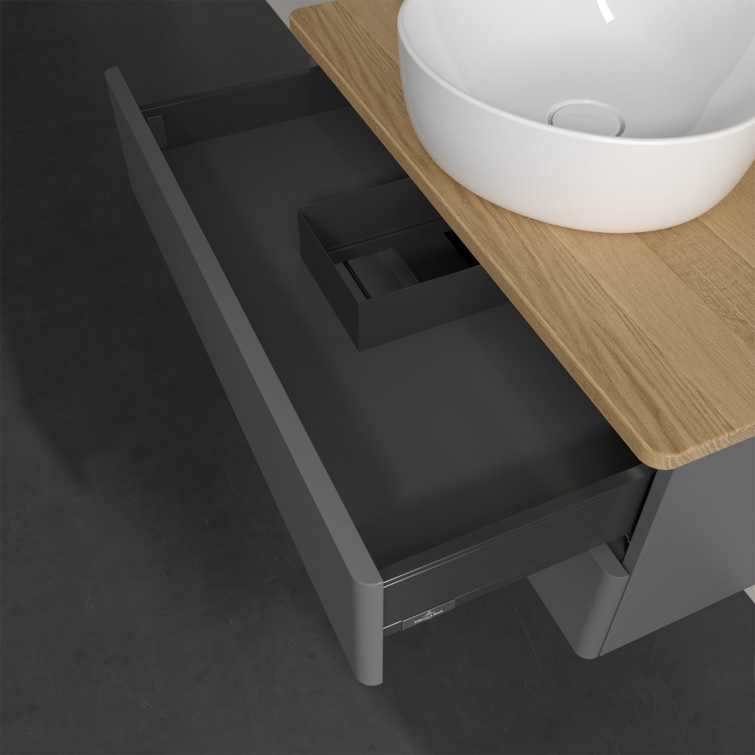 - kein Umfallen oder Verrutschen von Pflegeprodukten in den Schubladen dank rutschhemmendem Boden
