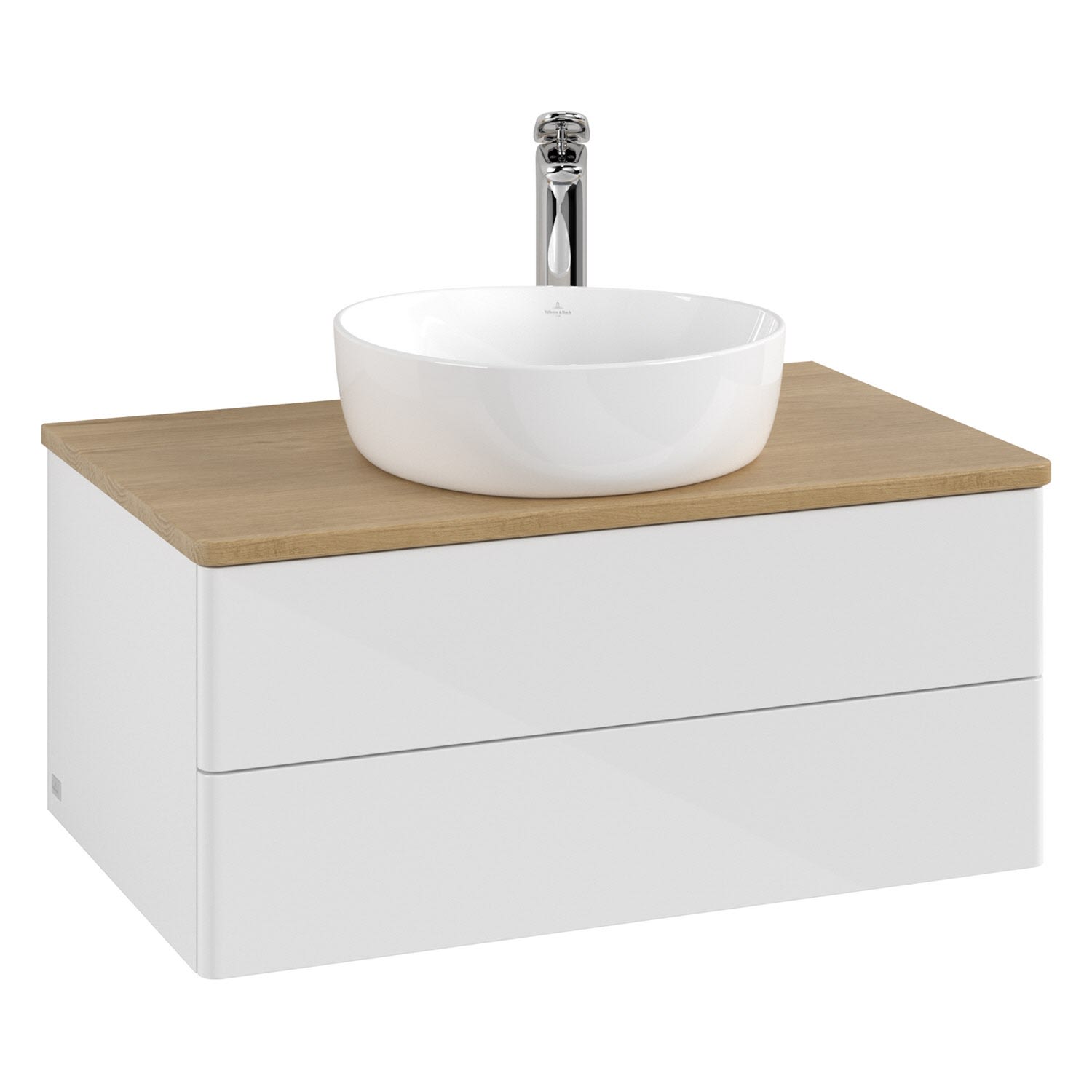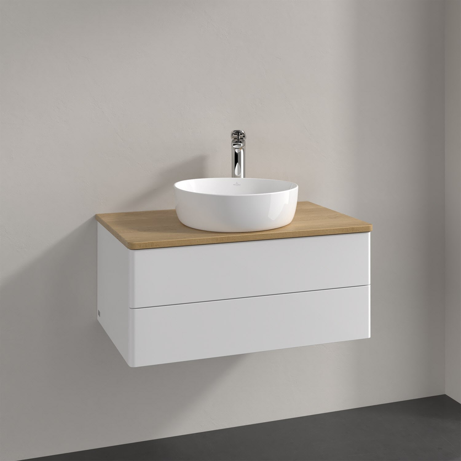 Villeroy & Boch Antao Waschbeckenunterschrank, 80 x 36 cm, 2 Auszüge mit LED-Licht, Front ohne Struktur, mit Hahnloch