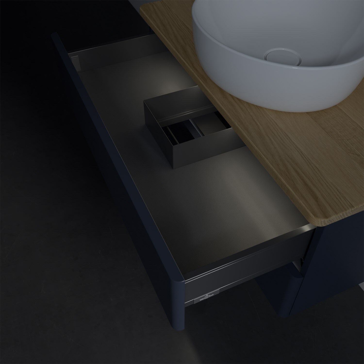 - in Schublade integrierte LED-Leiste mit warmweißem Licht zur Beleuchtung des Innenlebens