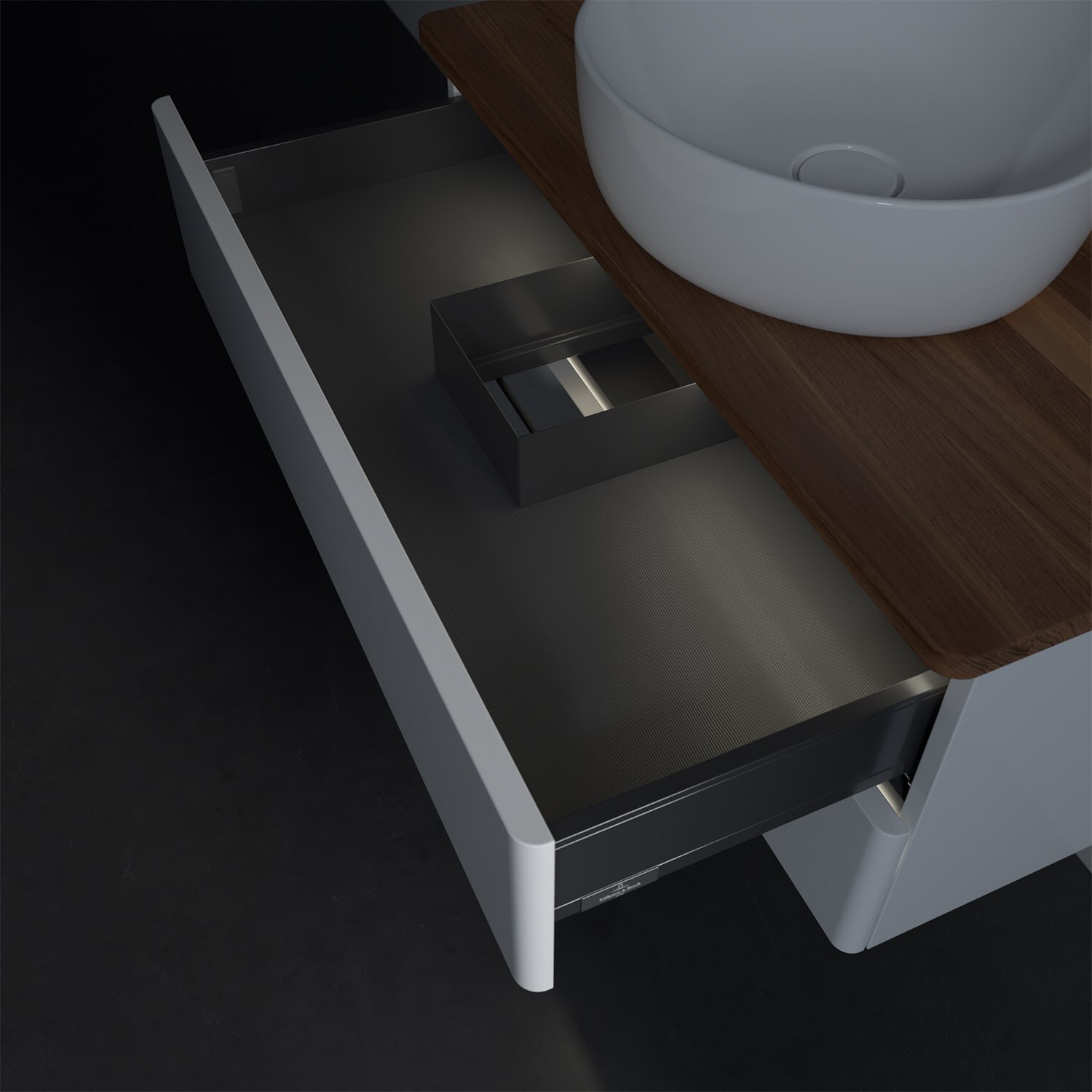 - kein Umfallen oder Verrutschen von Pflegeprodukten in den Schubladen dank rutschhemmendem Boden